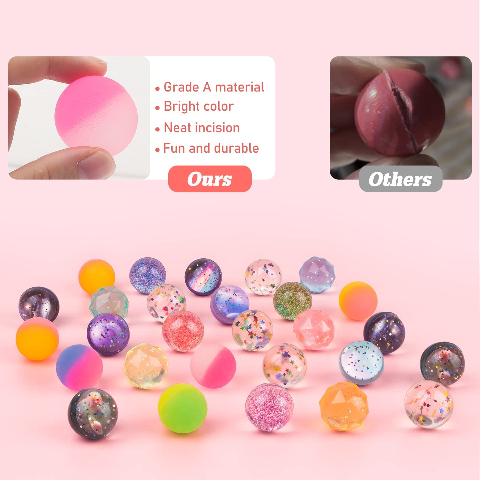 High Bouncy Balls:Ohanniewa Bouncy Balls Are Made Of Natural Rubber Material, Extra Dense, Have A Smooth Surface And Thanks To The High Elastic Rubber That Makes Them Bounce To A Great Height. Large Size Bouncy Balls,1.26Inch!: These Brightly Colored Bouncy Balls Are Not Tiny Like Other Bouncy Balls. Kids Will Enjoy Hours Of Fun Playing With Them. Assorted Colors And Styles: Bouncy Balls Come In A Variety Of Multi-Colors And 5 Styles, Glitter, Diamand, Stars... They Are Very Useful For Working Hand-Eye Coordination, Perfect Toys In Bulk For Goody Bags, Birthday Party Favors, Bulk Toys For Prizes And Carnival Prizes. Float In Water: Perfect For Children’S Bath Games,Rubber Bouncy Balls Will Not Split Easy And Offer You The Greatest Value. Pets Favorite: Make Your Pet Happier With These Balls, Especially If You Have A Cat. These High Bounce Balls Make For Exciting Games Of Fetch And Other Interactive Play Sessions With Your Lovely Pets.