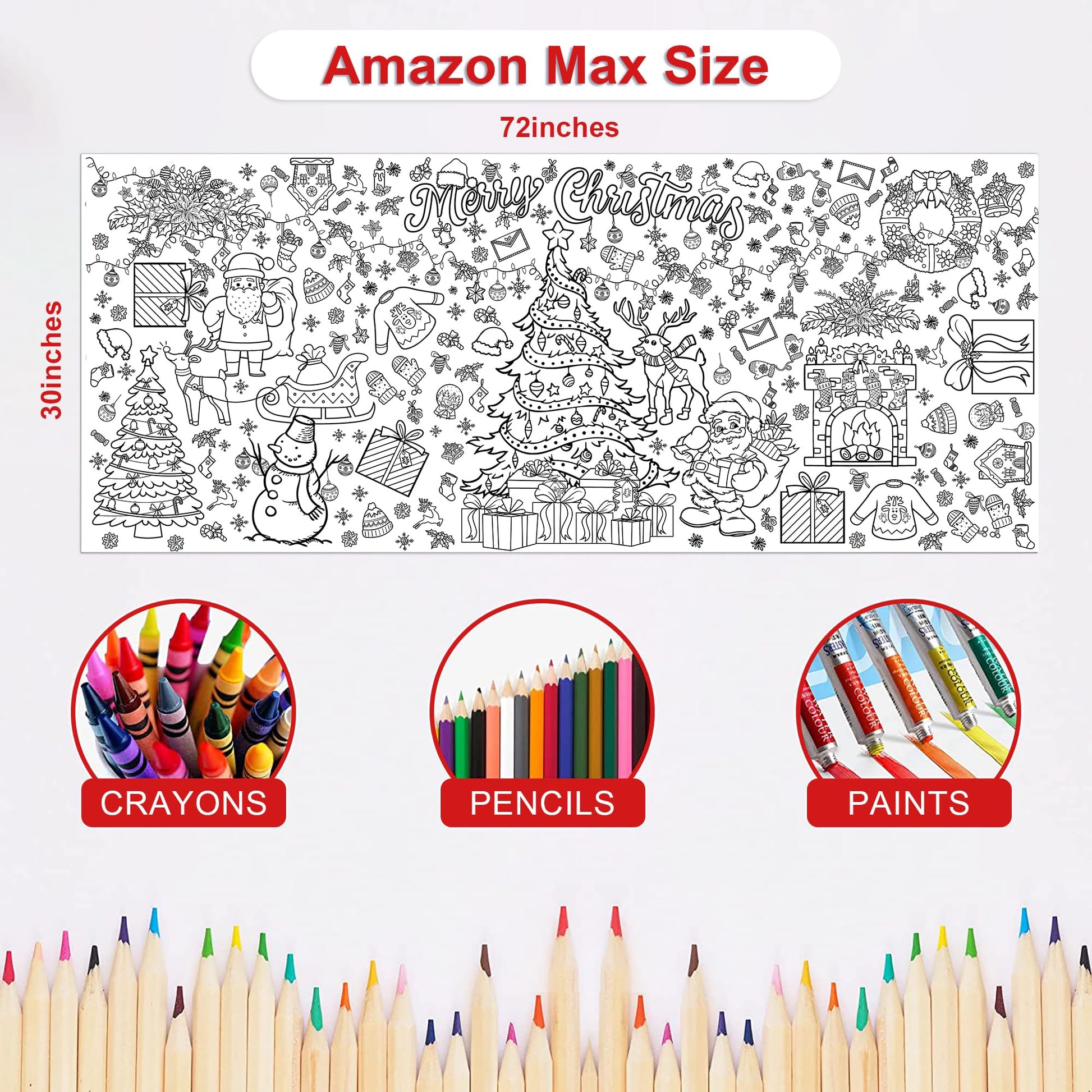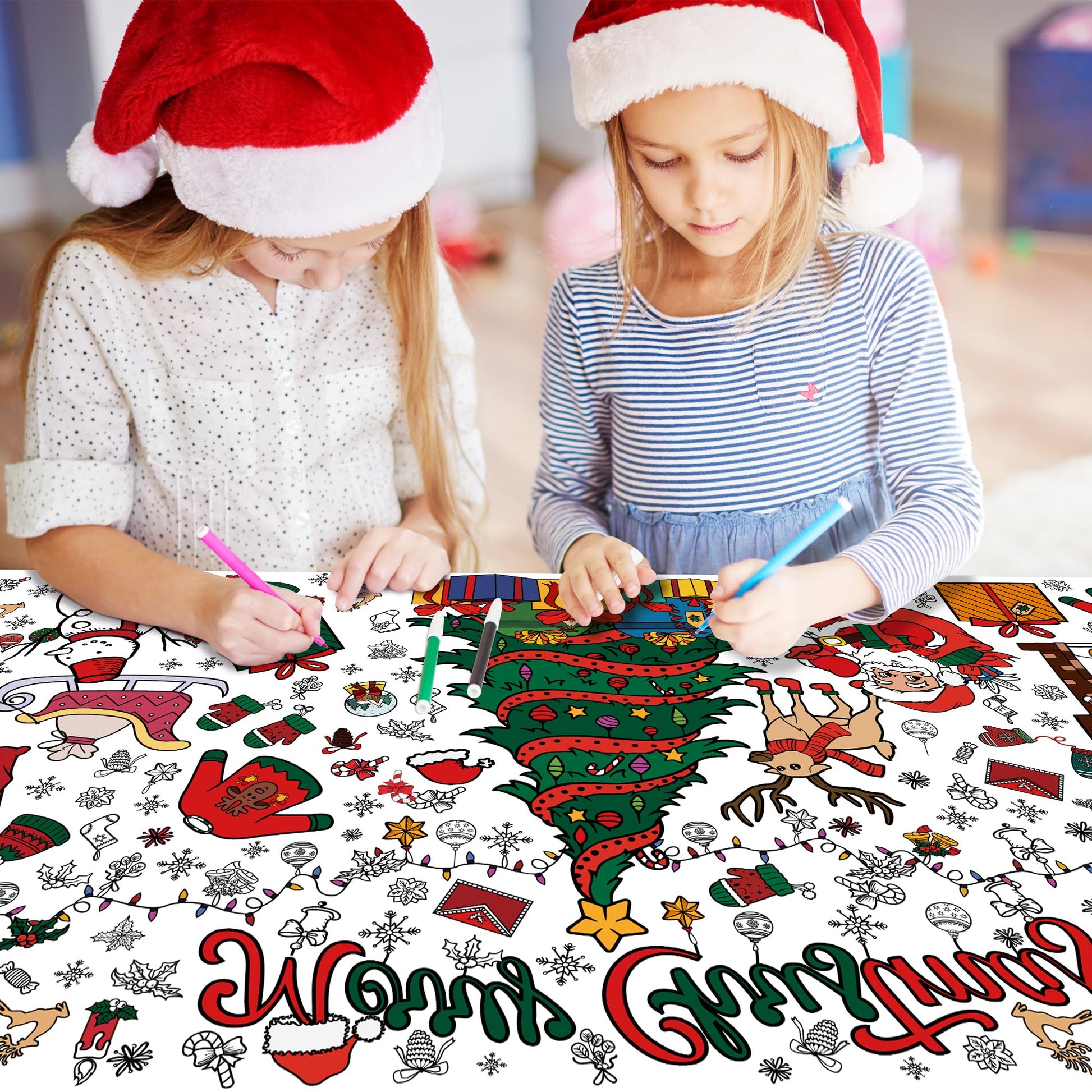 - Q: Can this coloring poster be used as a tablecloth for Christmas parties? A: Yes, the coloring poster doubles as a tablecloth, protecting your table from messes while providing a fun coloring experience for kids during Christmas parties and gatherings.