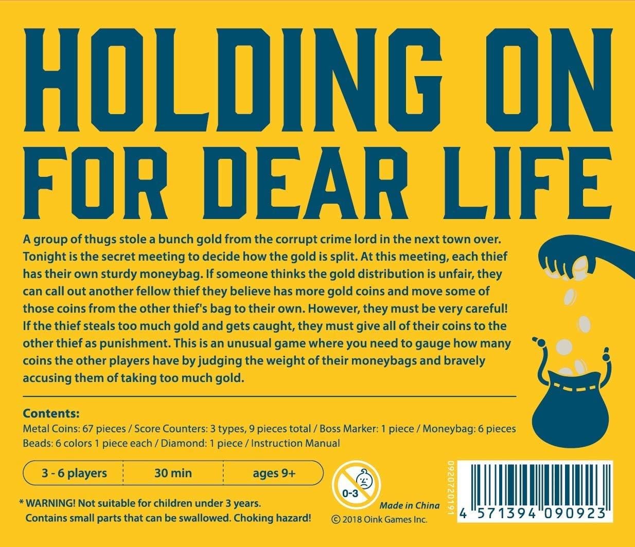 A Group Of Thugs Stole A Bunch Gold From The Corrupt Crime Lord In The Next Town Over. Tonight Is The Secret Meeting To Decide How The Gold Is Split. At This Meeting, Each Thief Has Their Own Sturdy Moneybag. If Someone Thinks The Gold Distribution Is Unfair, They Can Call Out Another Fellow Thief They Believe Has More Gold Coins And Move Some Of Those Coins From The Other Thief'S Bag To Their Own. However, They Must Be Very Careful! If The Thief Steals Too Much Gold And Gets Caught, They Must Give All Of Their Coins To The Other Thief As Punishment. This Is An Unusual Game Where You Need To Gauge How Many Coins The Other Players Have By Judging The Weight Of Their Moneybags And Bravely Accusing Them Of Taking Too Much Gold.