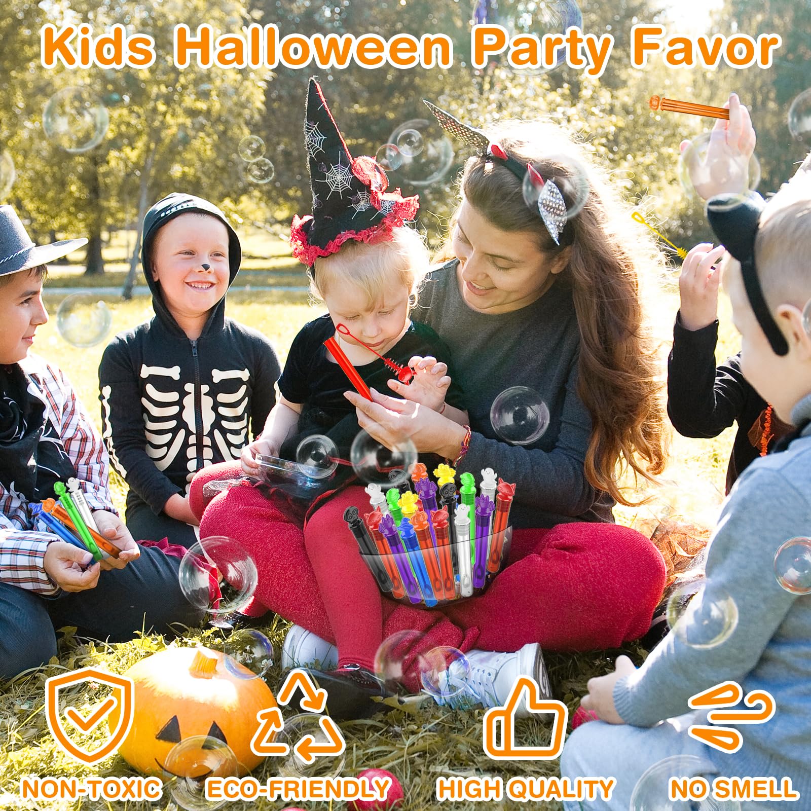 SUPER VALUE PACK.This halloween bubbles come in 80 pack with super cute pumpkin design.Each bubble measure 4 tall and contains 0.2 oz.Gives endless hours of bubbly joy and happiness! UNIQUE BUBBLE WAND. All your little ghouls and ghosts will love these pumpkin bubble bottles. A fun addition to your Halloween party supplies.Give them out as party favors at your classroom Halloween party, pass them out to co-workers on the big day, or drop them in treat bags when trick-or-treaters ring your doorbell. PARTY FAVORS.Perfect for Halloween party favors, Halloween party games, Halloween gifts, Halloween goodies, Halloween party supply, haunted Halloween parties, trick-or-treating, goodies bags, Halloween party favors, classroom prizes. CHILD SAFE: It comes with long lasting blowing, refillable and non-toxic smelless soap solution.Meet US Toy Standard. ASTM Safety Test Approved.very safe to kids skin and face. Recommended for small children aged 3+ year old. RETURN GUARANTEE.If you are not satisfied with the product or the product has any quality problems,we offer 30 days free return policy.