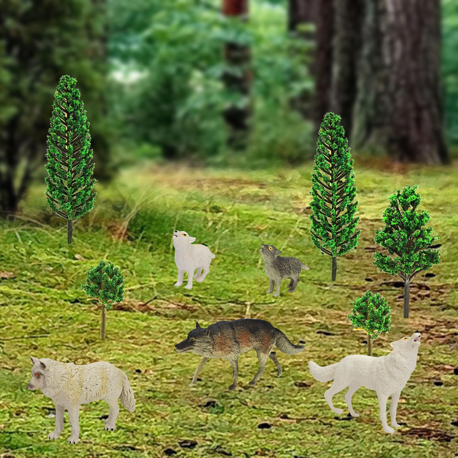View compareOnest 29 Pieces Mini Wolf Figurines Set Miniature Model Wolves Tree Toys Wolves Cake Toppers Decoration Small Wolf Figures For K
