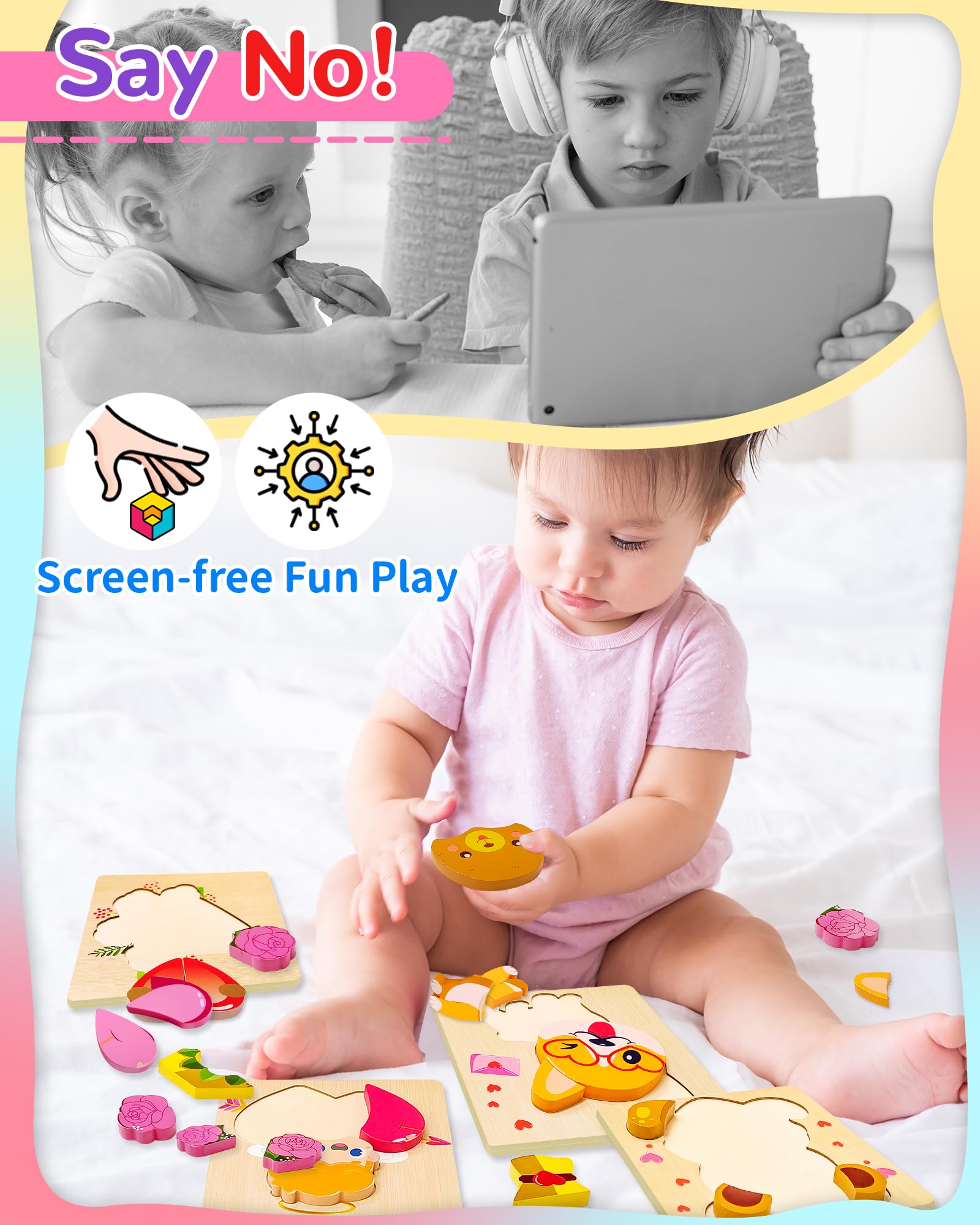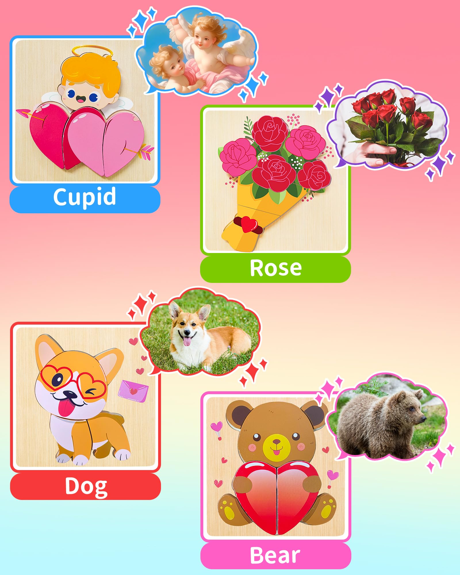 Oomloid 4 Pcs Valentine'S Day Gifts For Kids, Valentines Wooden Puzzles Toddler Toys For 3 4 5 Year Old Boys Girls, Montessori Toys For Kids Classroom Party Valentines Gifts