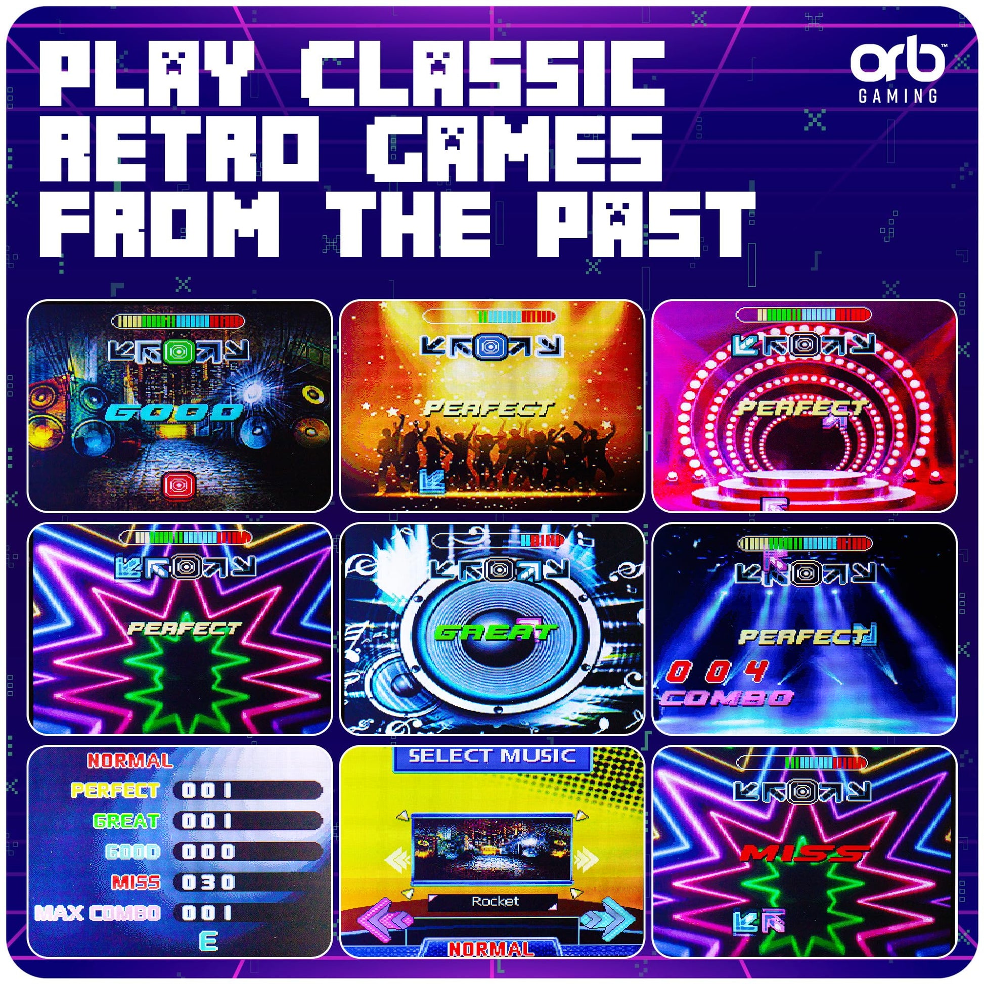 - Q: What type of games can you play on the Orb Mini Finger Dance Arcade Machine? A: You can play eight-bit retro arcade games. The variety of music and game styles keeps it entertaining for users.