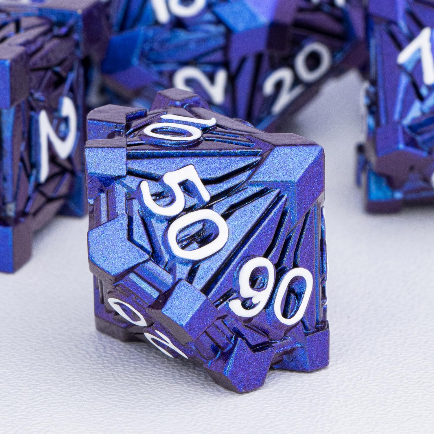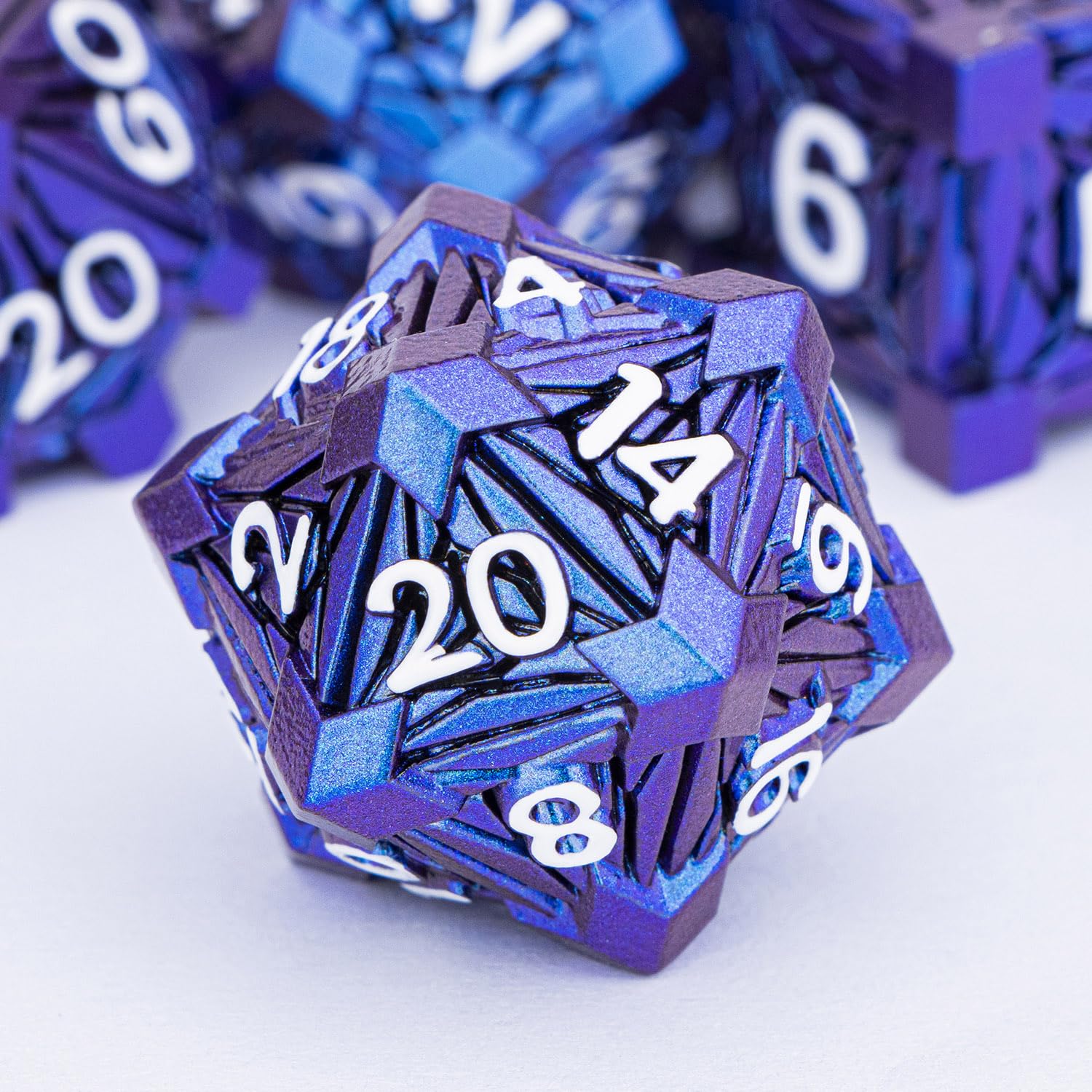 View compareOrifantou 7Pcs Metal Dnd Dice Set With Box, Debris Rpg Blue White D And D Dice For D&D Tabletop Games Role Playing Game Polyhedr