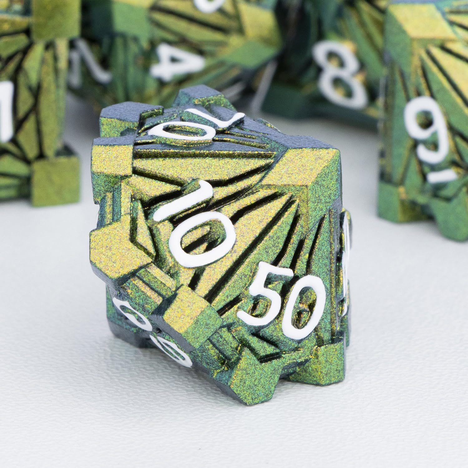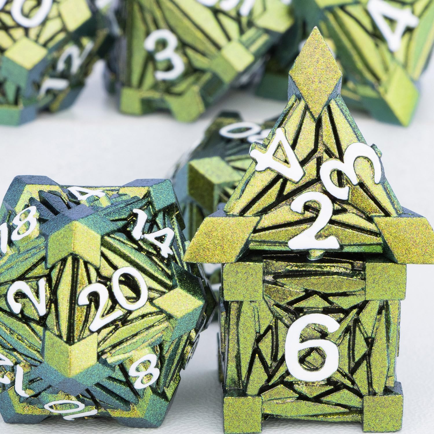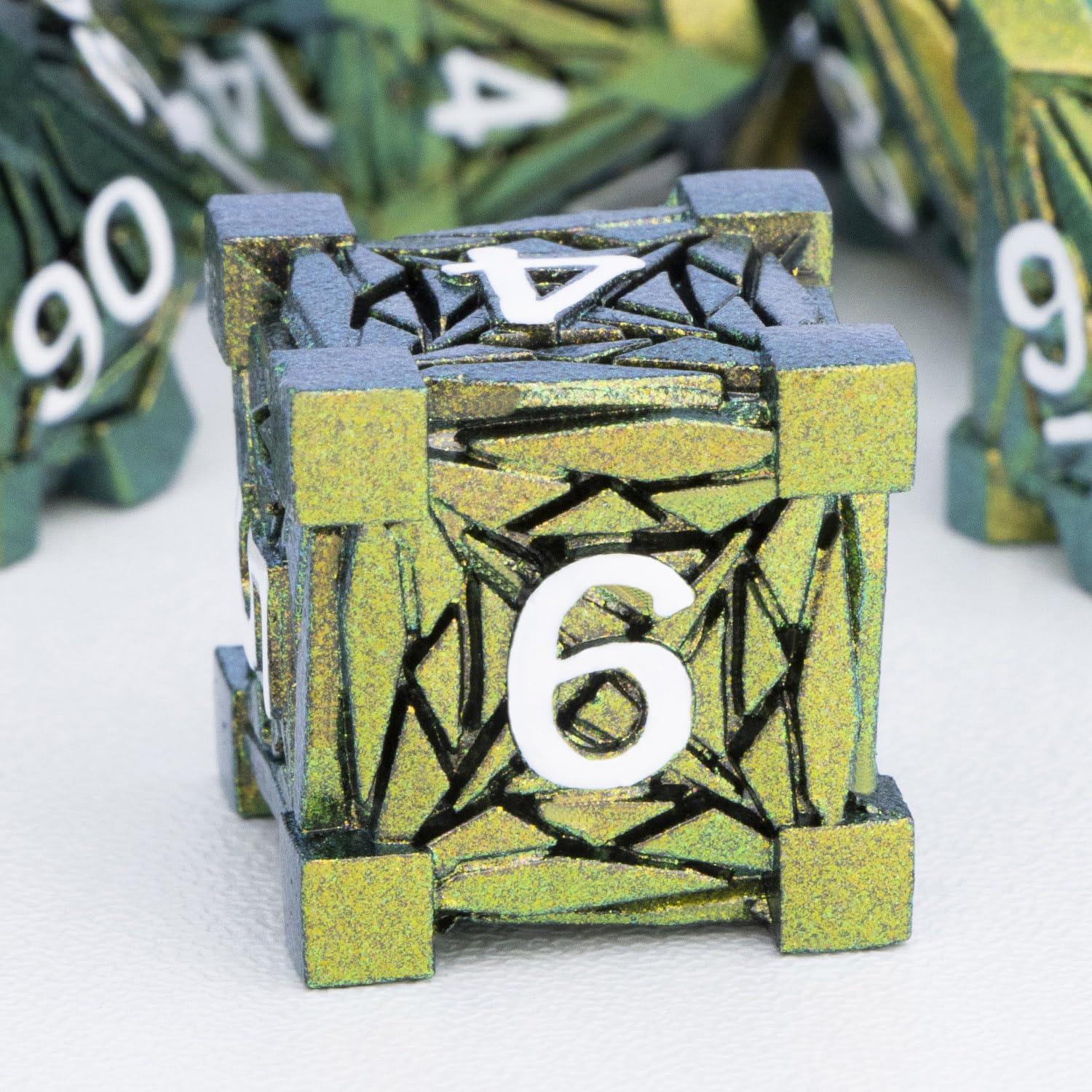 View compareORIFANTOU 7PCS Metal DND Dice Set with Box, Debris RPG Green Yellow D and D Dice for use with D&D Tabletop Games Role Playing Ga