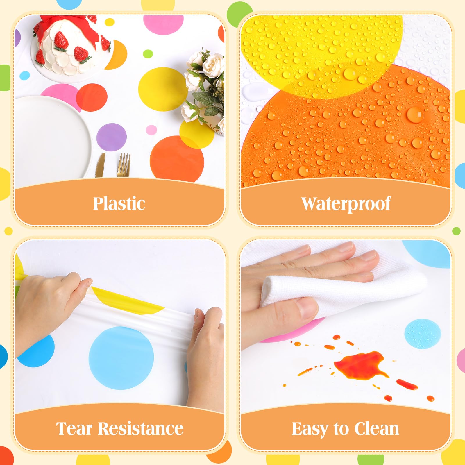 Features: As a Gift This colorful polka dot tablecloth looks cute and fun and can be given as a gift to your friends, family, colleagues, etc Reuse Is Optional If the tablecloth is not very dirty, you can put it away to protect the environment and use it again Specifications: Material: plastic Color: multicolored Size: 108 x 54 inch/9 ft x 4.5 ft Package includes: 1 x colorful polka dot tablecloth Notes: Manual measurement, please allow slight errors on size. The color may exist a slight difference due to different screen displays.