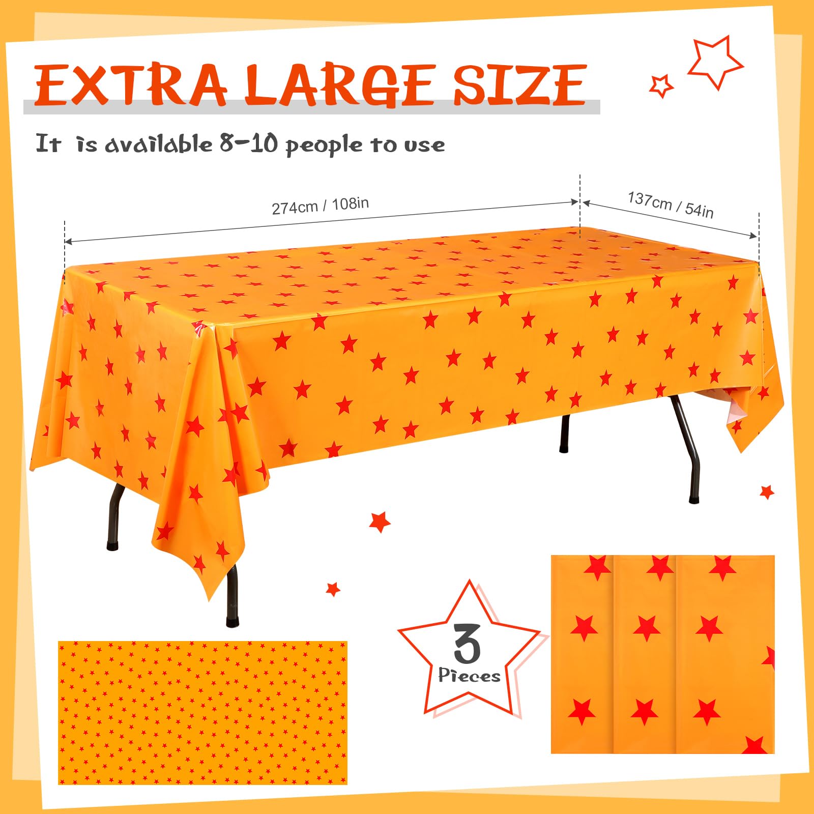 Features: Anime Theme Design: Transform your party into a vibrant anime experience with our set of 3 anime theme tablecloths. These eye-catching tablecloths breathe life into any event with their fascinating orange background and red five pointed stars. Large Size and Quantity: Measuring a generous 108L x 54W, they provide substantial coverage for your tables to ensure the utmost protection. The package includes 3 yellow and red colored party table covers, granting you the flexibility to host grander parties or multiple small events. Specifications: Material: plastic Color: yellow, red Size: 108L x 54W Package includes: 3 x Anime theme tablecloth Notes: Manual measurement, please allow slight errors on size. The color may exist a slight difference due to different screen displays.