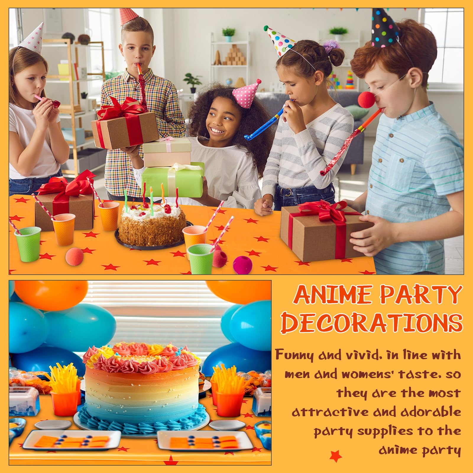 Oudain 3 Pcs Anime Theme Tablecloth Yellow and Red Stars Print Table Cover Set 108 x 54 Inches Party Decor Supplies Birthday The