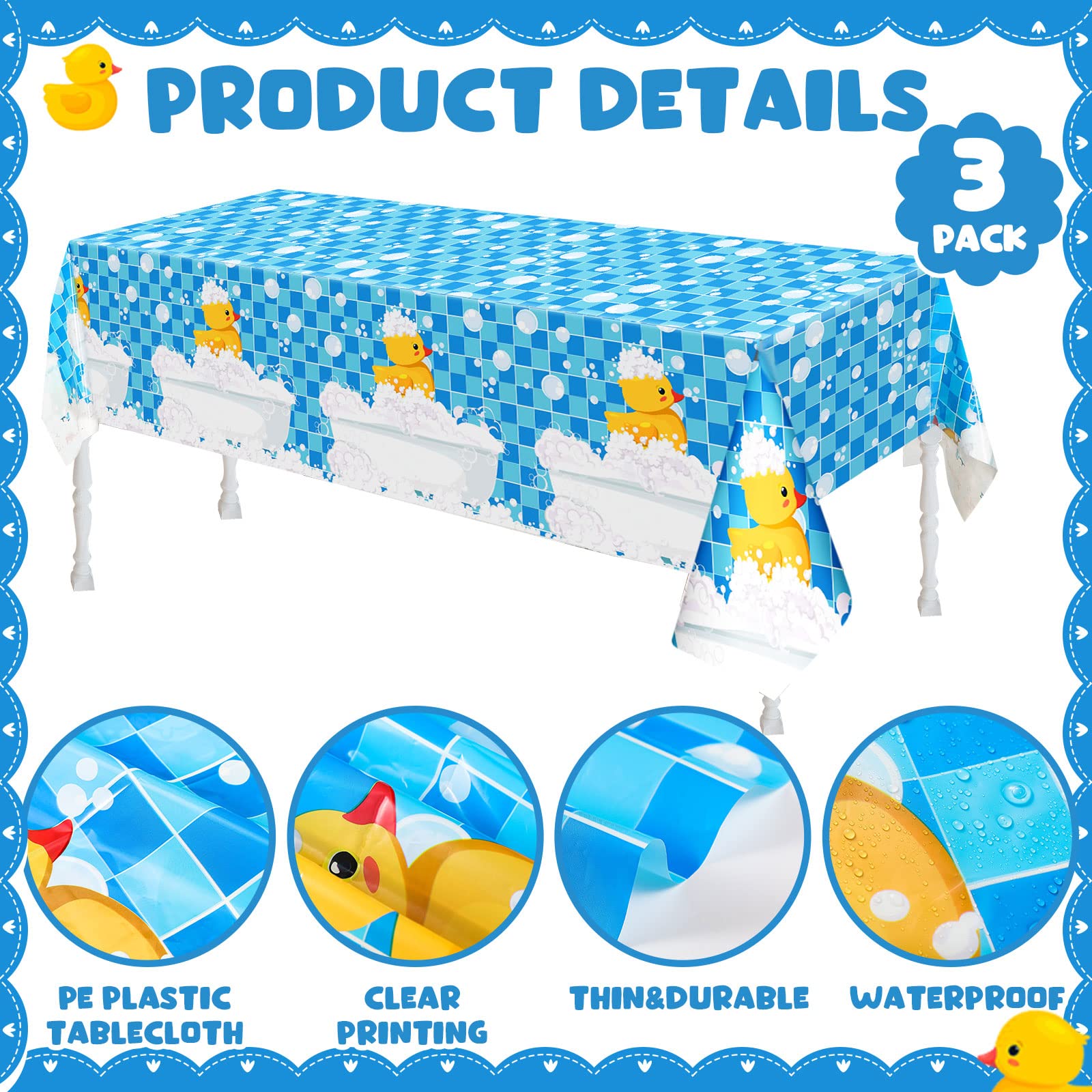 Oudain 3 Pcs Yellow Duck Tablecloth Cute Bubble Rubber Ducky Table Cover Disposable Duck Birthday Decorations Plastic Duck Table