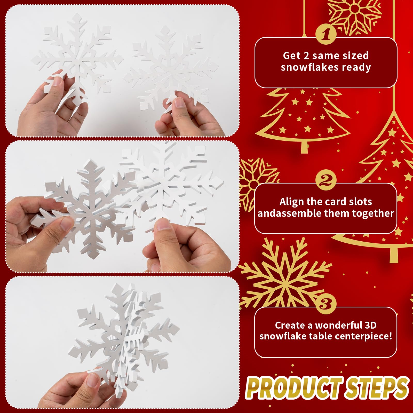 Package includes 12pcs white snowflake decorations Christmas table centerpieces, comes with different styles & sizes: 3.9”, 4.7”, and 5.5” in diameter. Easy to create 6 sets of 3D snowflake table centerpieces, adding a festive atmosphere to your Christmas party in winter. Laser-cut, polished, and carefully selected with no burrs or splinters, ensuring safety for kids.