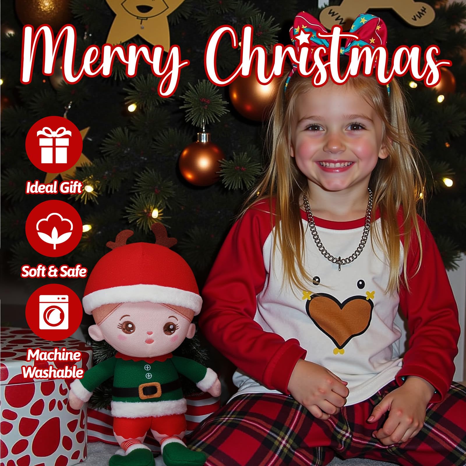 ??FRIENDS FOREVER - This Christmas plush doll is packed with magic and festive excitement. It is a holiday gift that will ignite kid's curiosity and joy in the Christmas story. Bring this adorable friend home to be your baby's beloved companion and create lasting memories this holiday season. | ??CHRISTMAS GIFT IDEA - This foldable, soft plush doll fits perfectly inside a toddler's Christmas stocking, creating a delightful surprise. The adorable girl doll, complete with a matching Santa hat design, is a charming addition to any gift box, making it easy for parents to present. It
