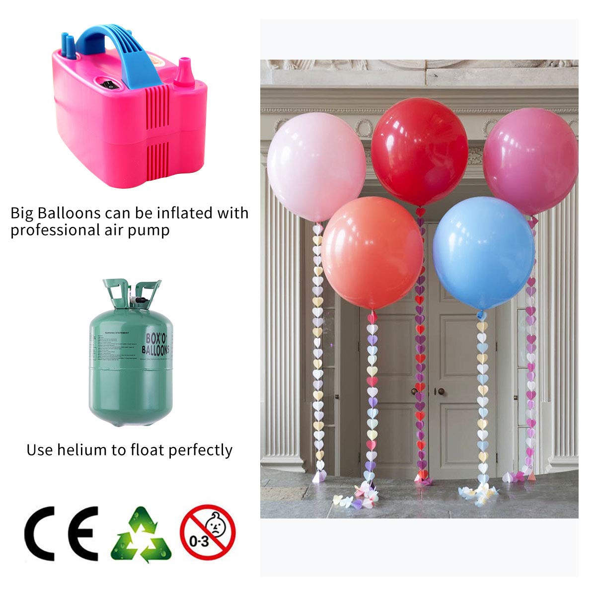 Multi-Use: Big Balloons Are Variety Use, Can Be Used For Blasting, Confetti Balloons, Post Ball, Etc. Balloon Arches, Balloon Flowers, Balloon Posts, Etc. All Kinds Of Party Decoration: Perfect For Wedding Decorations, Bridal Decorations, Engagement Party, Valentine'S Day, Anniversary, Celebration Decorations, Housewarming Party, Cake Pops, Autumn Fall Party, Graduation Celebrations, Christmas, Congratulations, New Year'S, Thanksgiving, Encouragement &Amp; Good Luck, Baptism. Extend The Use Of Time For Balloons: Use Helium To Inflate And Use The Protective Fluid To Allow The Balloon To Float Naturally For At Least 8 Hours. Multiple Ways To Dress Up: &Nbsp; 1.Stick The Balloon On The Ceiling And Fixed To Produce A Floating Effect. 2.Combine Large Balloons With Other Different Sizes To Create A Beautiful Balloon Bouquet, Also Create Parties With Different Themes. Oxidation: After The Balloon Is Inflated, It Will Slowly Degrade And Oxidize, The Color Gradually Fades, And The Surface Is Covered With A Layer Of White Oxide. Therefore, The Balloon Before Oxidation Will Look Brighter. The Higher The Temperature, The More Ventilated, The Faster The Balloon Oxidizes. Warm Tips: 1.People Allergic To Natural Rubber Latex Please Avoid Direct Contact. 2.Keep Away From Fire, Sharp Objects, And Avoid Prolonged Exposure To The Sun. 3.Please Be Careful Not To Over-Inflate. 4.The Colors Maybe Slightly Different Due To Various Factors: Lighting, Monitor, Manufacturer Batch Color Variation And Personal Understanding Of Color. 5.There Will Be A Layer Of Talcum Powder On The Surface Of The &Nbsp;Latex Balloon, Which Has Lubricity, Anti-Sticking, Good Covering Power, And Delays The Aging And Oxidation.