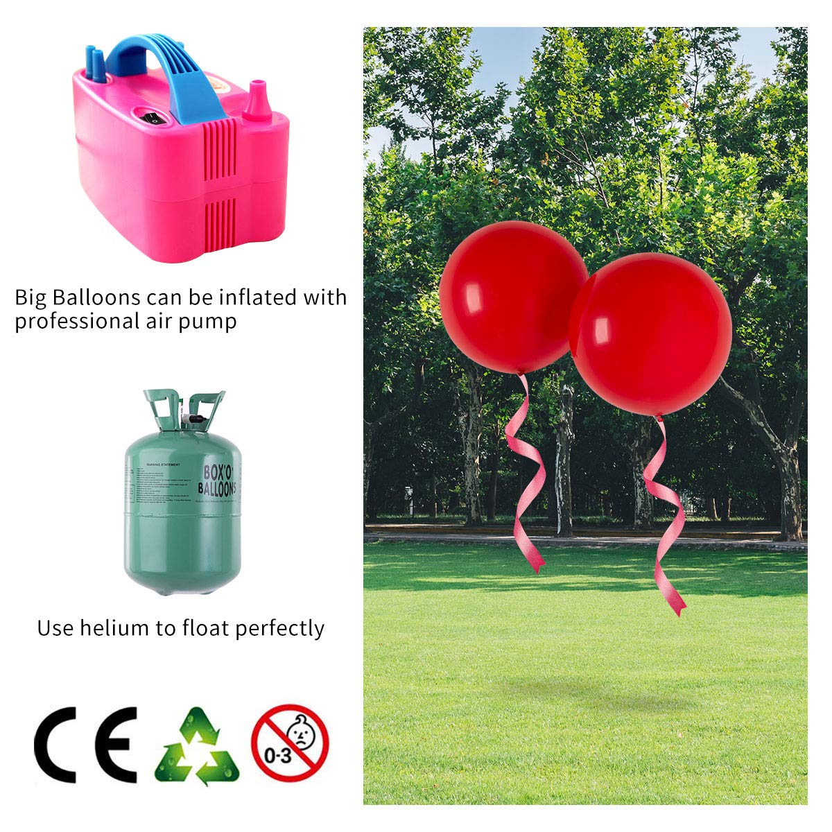 Multi-Use: Big Balloons Are Variety Use, Can Be Used For Blasting, Confetti Balloons, Post Ball, Etc. Balloon Arches, Balloon Flowers, Balloon Posts, Etc. Variety Colors And Size We Provided: Size: 36 Inches / 24 Inches Color Including: Red, Pomegranate Red, White, Black, Clear, Silver, Pink, Green Etc. Macaroon Color: Macaroon Blue, Macaroon Pink, Macaroon Baby Pink, Macaron Teal, Macaron Purple, Macoron Green Etc. Extend The Use Of Time For Balloons: Use Helium To Inflate And Use The Protective Fluid To Allow The Balloon To Float Naturally For At Least 8 Hours. Multiple Ways To Dress Up: 1.Stick The Balloon On The Ceiling And Fixed To Produce A Floating Effect. 2.Combine Large Balloons With Other Different Sizes To Create A Beautiful Balloon Bouquet, Arch, Garland Kit Etc. Also Create Parties With Different Themes. Oxidation: After The Balloon Is Inflated, It Will Slowly Degrade And Oxidize, The Color Gradually Fades, And The Surface Is Covered With A Layer Of White Oxide. Therefore, The Balloon Before Oxidation Will Look Brighter. The Higher The Temperature, The More Ventilated, The Faster The Balloon Oxidizes. Warm Tips:1.People Allergic To Natural Rubber Latex Please Avoid Direct Contact. 2.Keep Away From Fire, Sharp Objects, And Avoid Prolonged Exposure To The Sun. 3.It Needs Sufficient Helium To Make It Float, At Least To The Size Of About 90Cm, Please Be Careful Not To Over-Inflate. 4.The Colors Maybe Slightly Different Due To Various Factors: Lighting, Monitor, Manufacturer Batch Color Variation And Personal Understanding Of Color. 5.There Will Be A Layer Of Talcum Powder On The Surface Of The Latex Balloon, Which Has Lubricity, Anti-Sticking, Good Covering Power, And Delays The Aging And Oxidation.