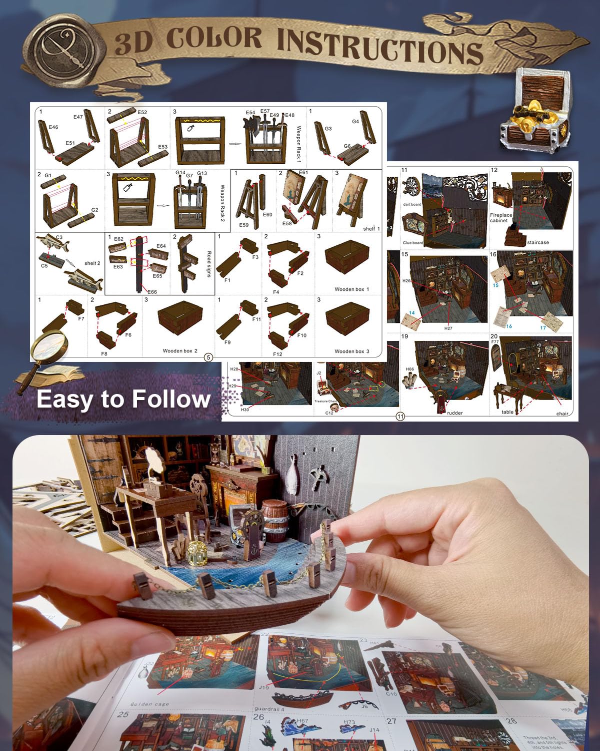 View compareOurMiao Book Nook Kit Pirate Ship Aden, DIY Miniature Book Nook Kits for Adults, 3D Wooden Puzzle Bookshelf Insert Decor with Se