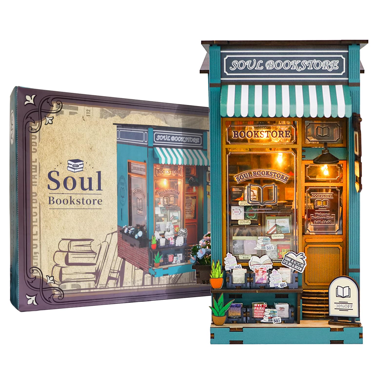 Ourmiao Book Nook Kit Soul Bookstore, Diy Wooden Booknooks Kit For Adults Women Teens, Bookshelf Diorama Miniature Scenes Insert