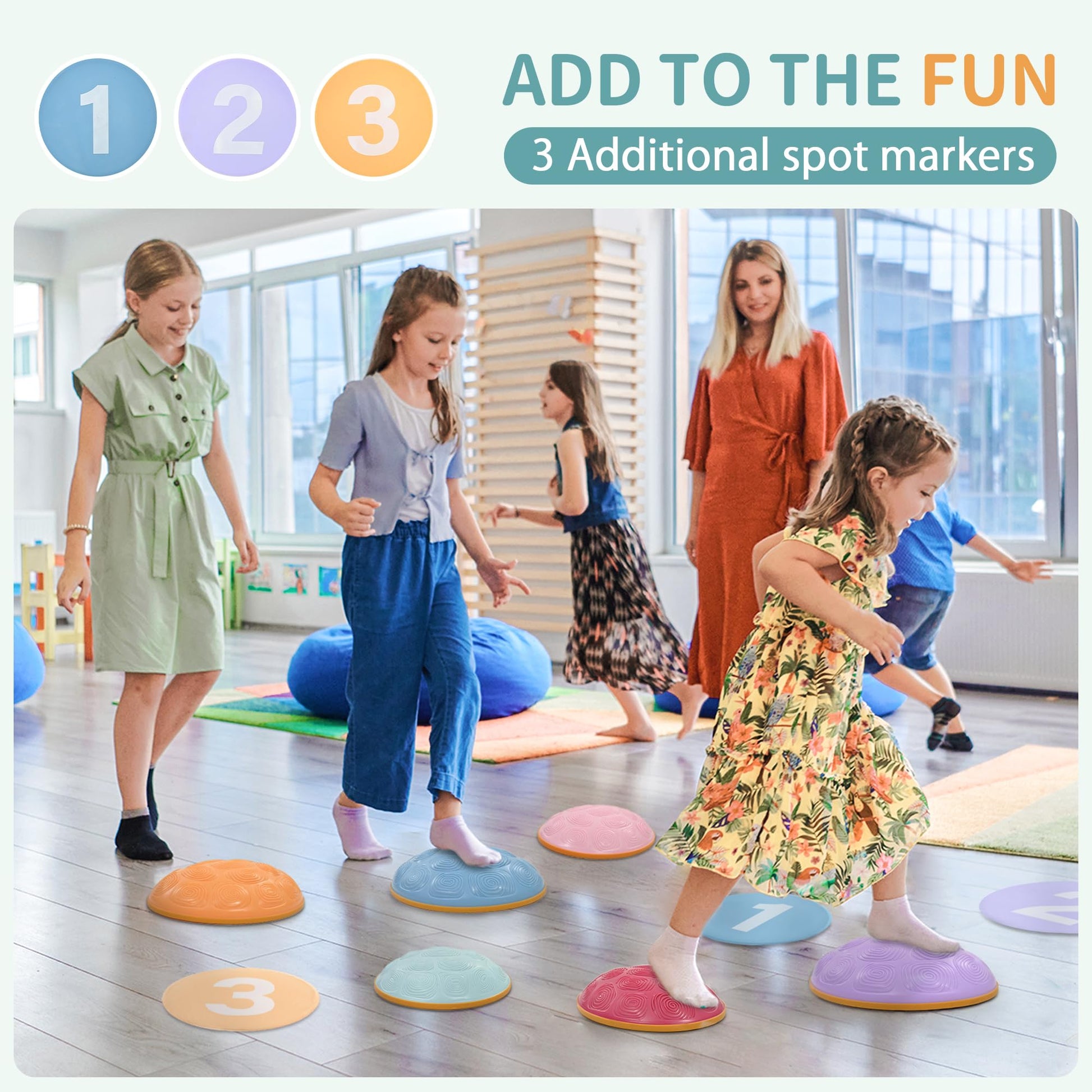 - Q: What activities can kids do with the stepping stones? A: Kids can use the OUTREE Stepping Stones for balance training by walking, standing, or jumping on them, as well as engaging in imaginative play scenarios like 'the floor is lava'.