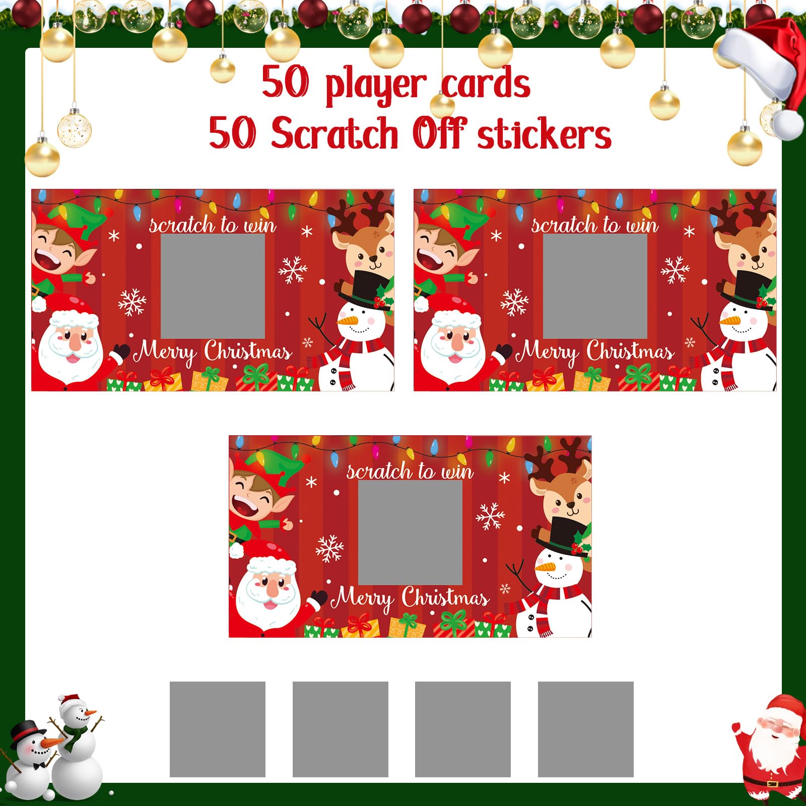Outus 50 Pieces Christmas Scratch Off Cards Stickers Christmas Hawaii Party Games Vouchers Festive Raffle Tickets Holiday Business Prize Drawings For Kids Adults Families Events Groups (Mixed Style)