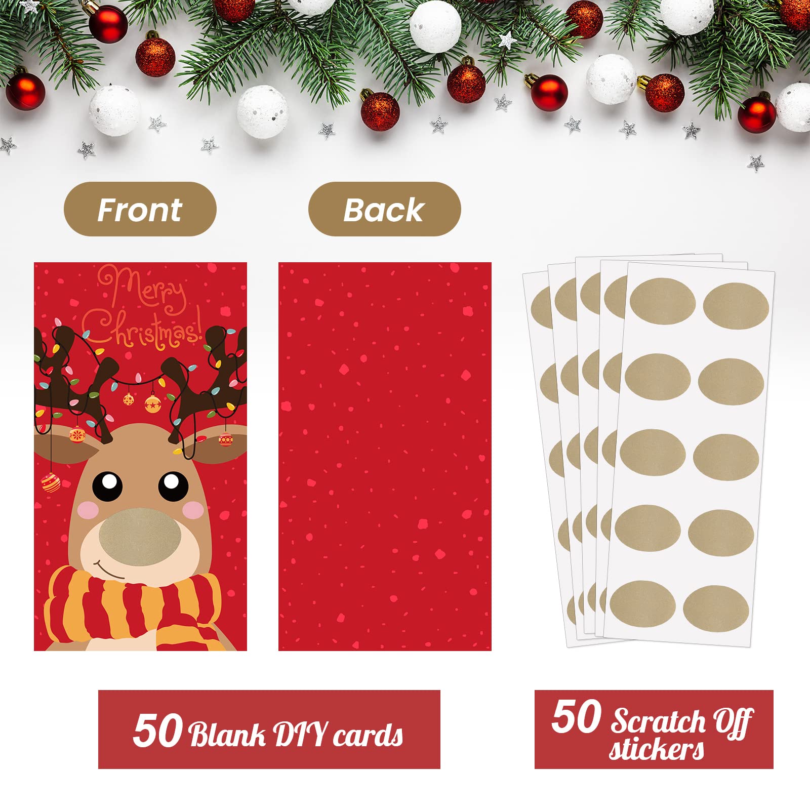 Outus 50 Pieces Christmas Scratch Off Cards Stickers Christmas Hawaii Party Games Vouchers Festive Raffle Tickets Holiday Business Prize Drawings For Kids Adults Families Events Groups (Tree)