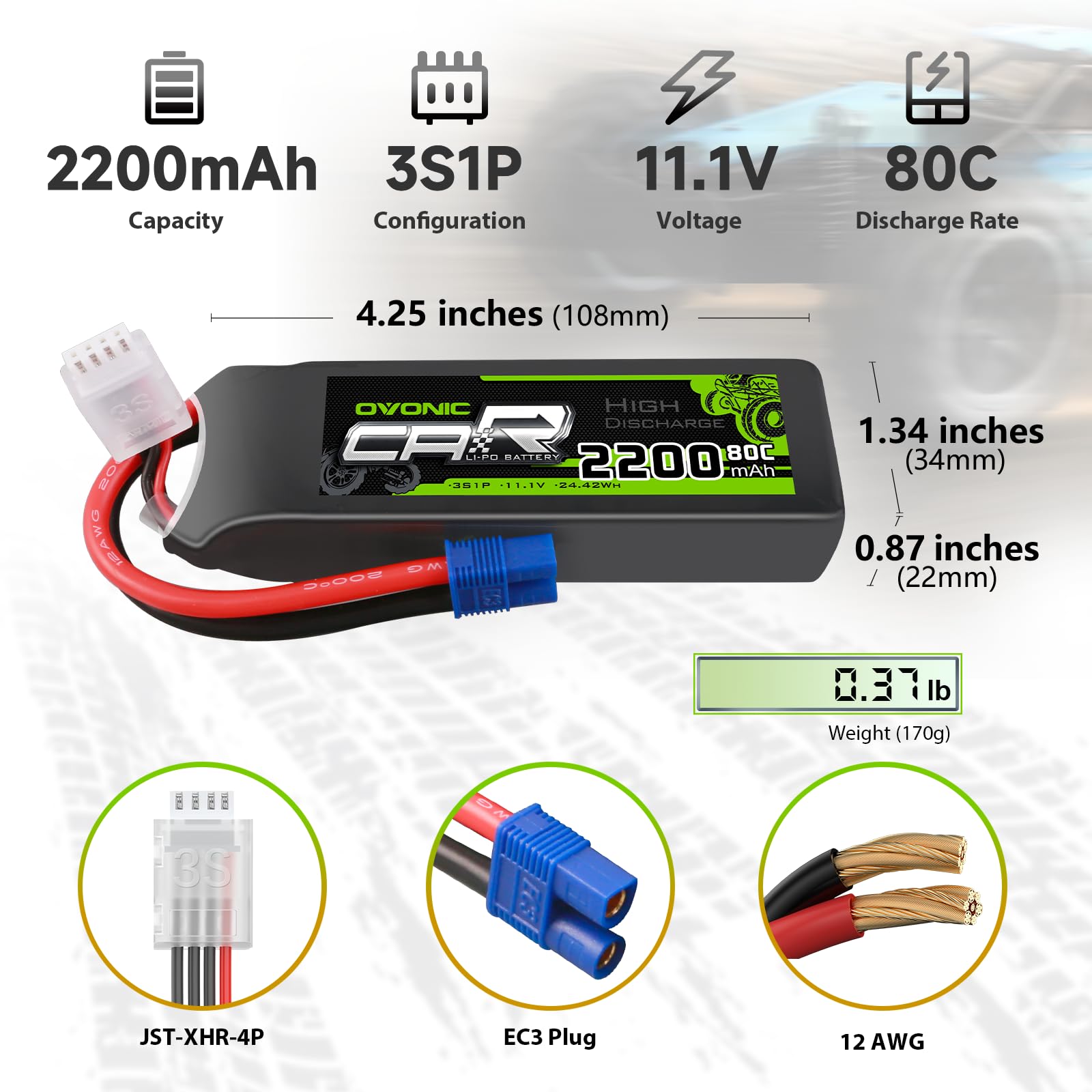 - Q: Is the OVONIC Lipo Battery compatible with all RC vehicles? A: This battery is specifically designed for 1/8 and 1/10 scale RC cars and trucks, making it compatible with many RC vehicles that require a 3S configuration. Always check your vehicle's specifications to ensure compatibility.