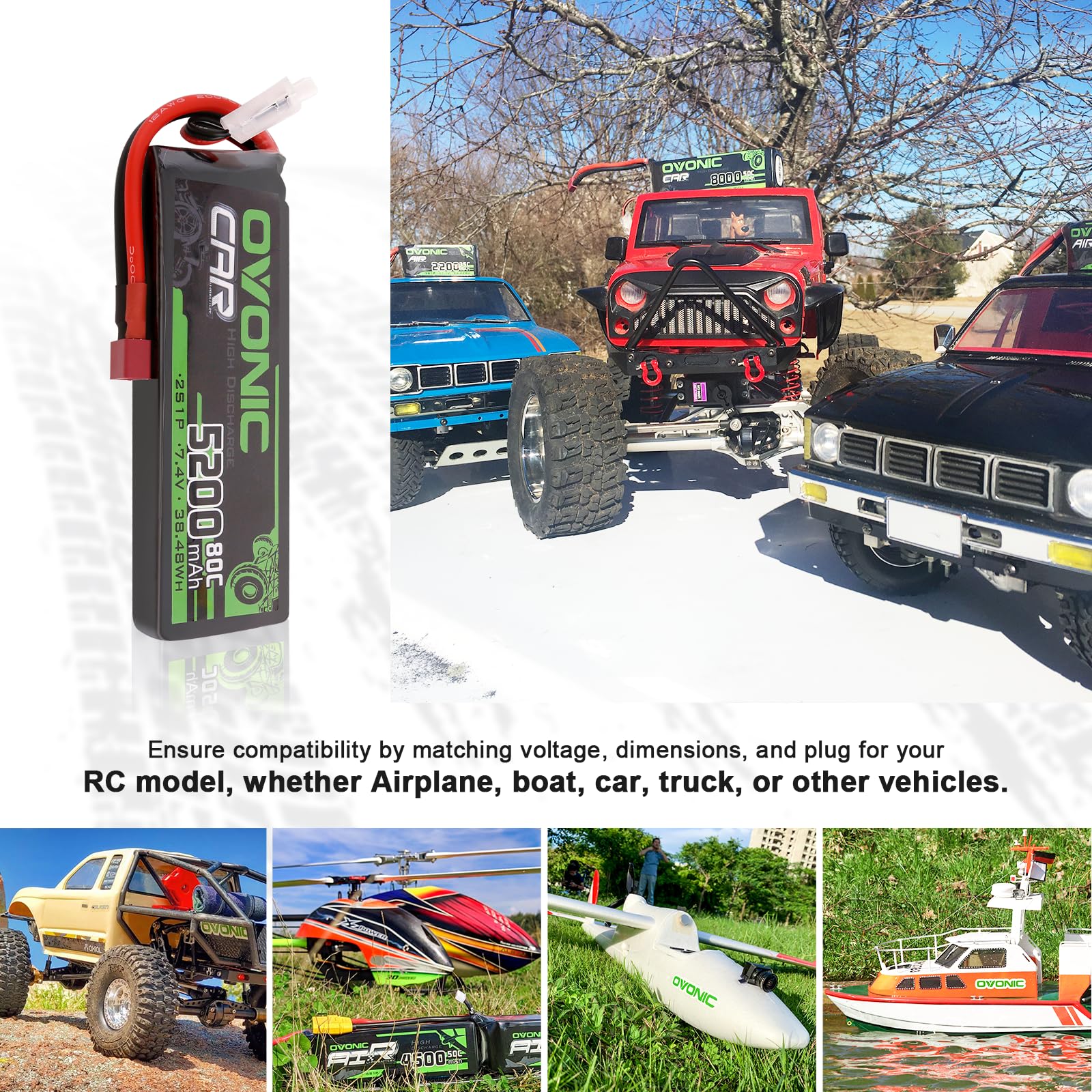 - Q: Is the OVONIC 7.4V 2S Lipo Battery compatible with my RC vehicle? A: Yes, the OVONIC 7.4V 2S Lipo Battery is compatible with a variety of RC vehicles including 1/8 and 1/10 scale models, such as the Losi Slash Buggy, Team Associated short course trucks, and other monster trucks and crawlers.