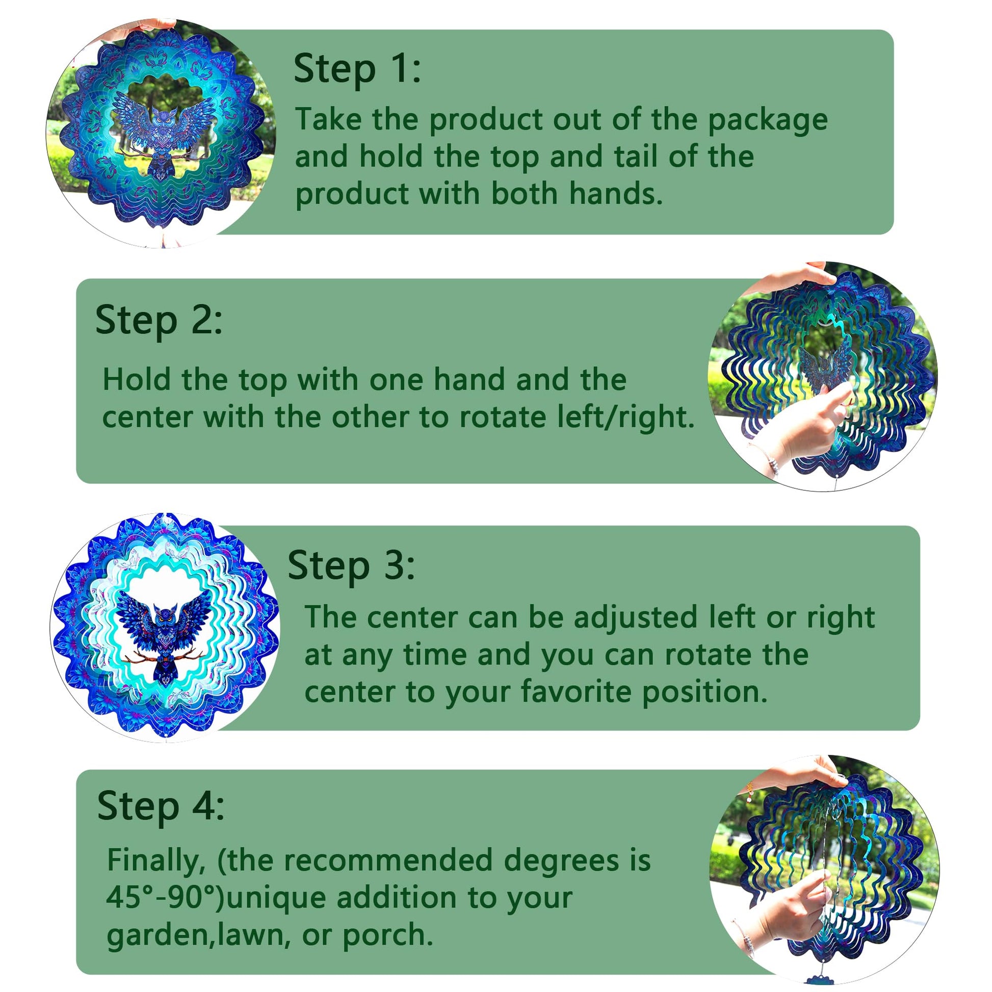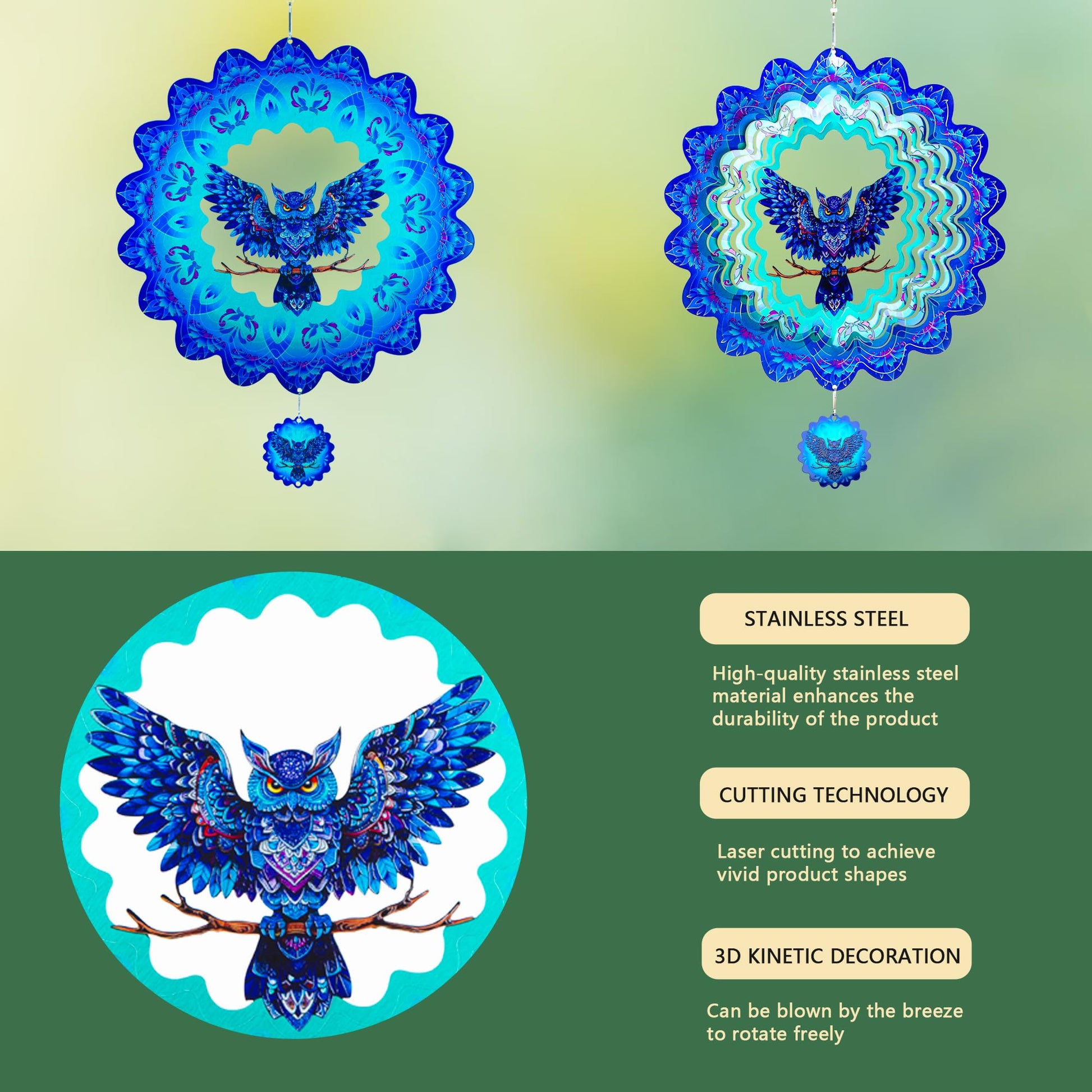 Owl Gifts For Women Men, Owl Hanging Wind Spinners Outdoor, 12Inch 3D Stainless Steel Reflective Wind Spinners Garden Decor