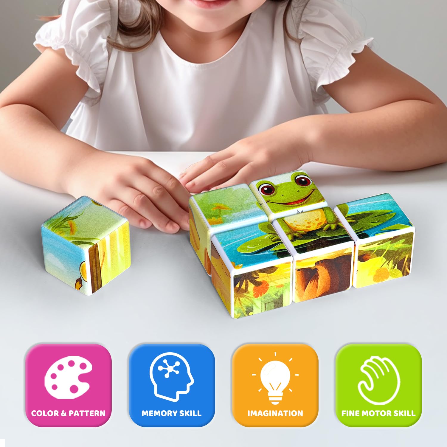 Pairez Toys 3D Plastic Cubic Jigsaw Puzzle Toys For Toddlers, Large Building Blocks Cubes 1.65 Inches, Integrated With Magnets, 6 Patterns In Animal Theme