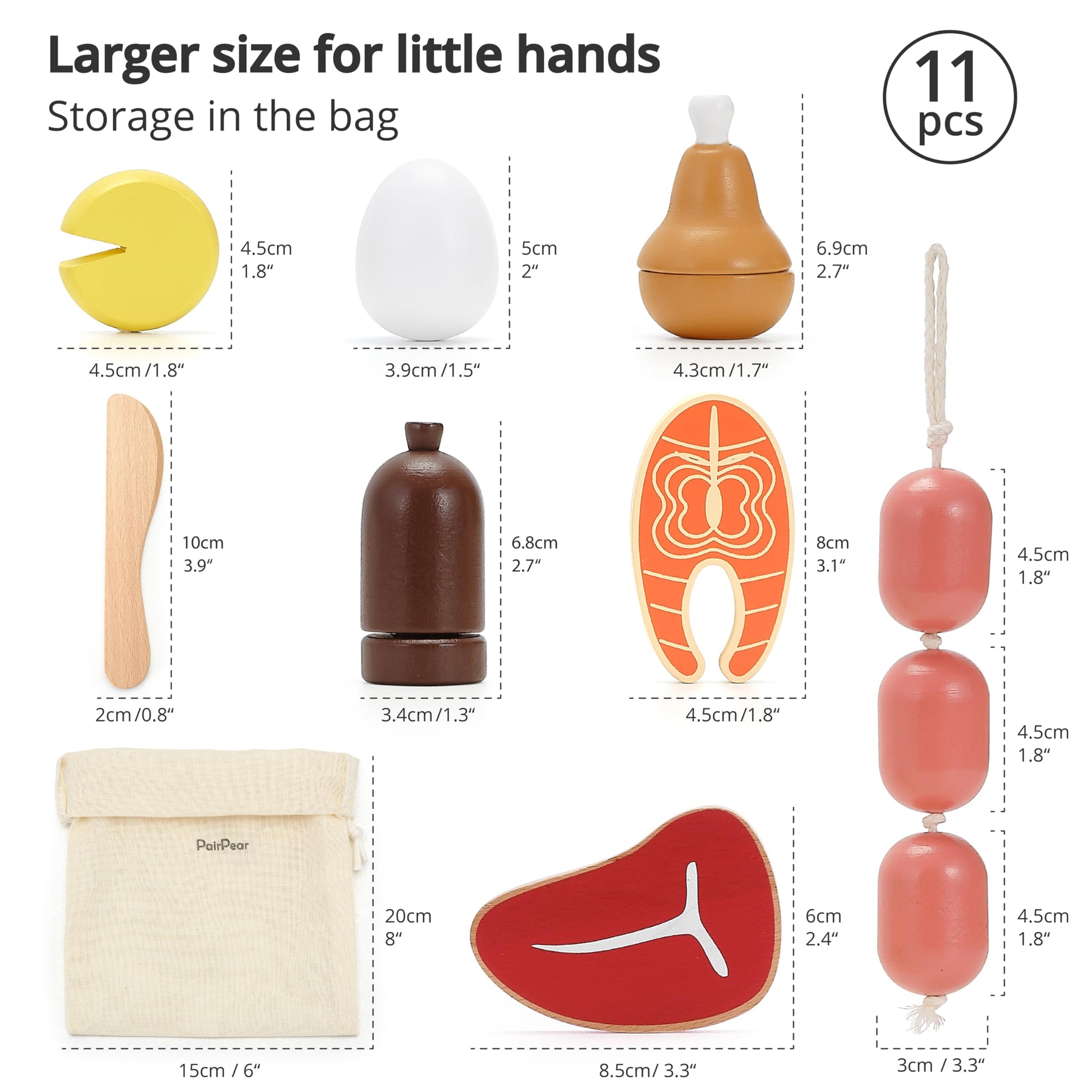 PairPear Wooden Toys Play Food Sets for Kids Kitchen, Kids Toy Food Cutting Meat Set for Toddlers 3+ Years Old, Pretend Food Play Kitchen Accessories for Girls and Boys