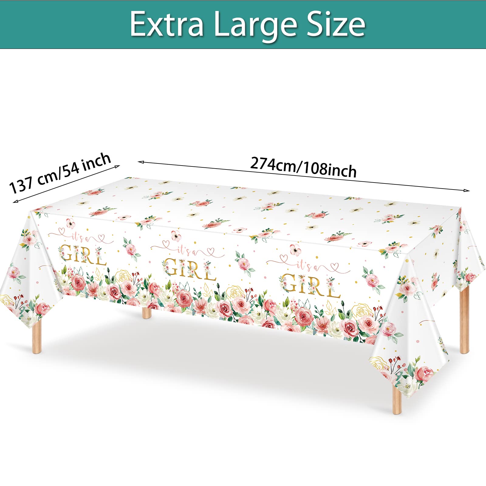 Pajean Floral Baby Shower Supplies Its a Girl Baby Shower Party Tablecloths Girls Flowers Table Cover for Kids Baby Girls Showe
