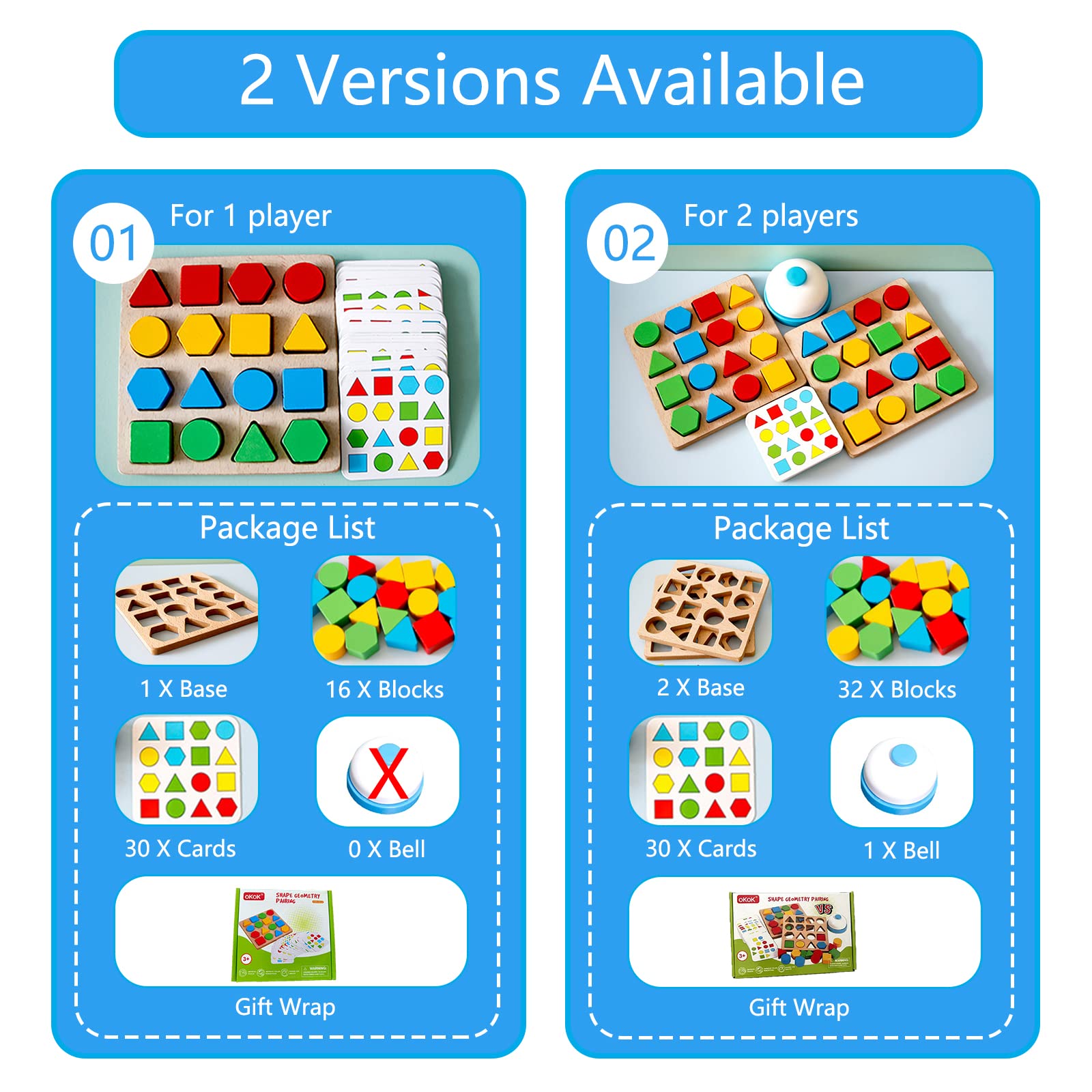 View comparePajojoqa Shape Matching Game Color Sensory Educational Toy, Geometric Shape Quick Matching Board Game Montessori Learning Toys F