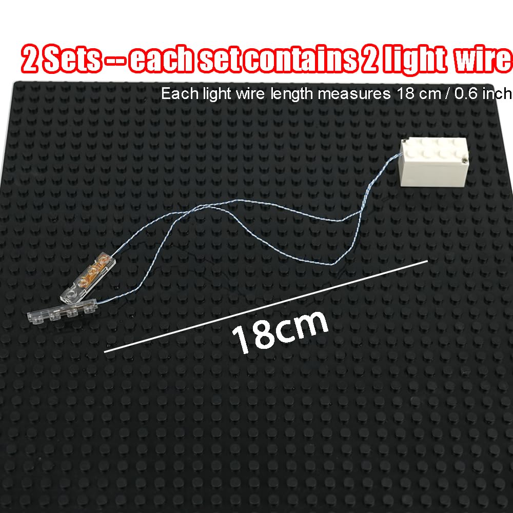 Contain 2 sets. Each set includes 2 pieces of 1*4 light bricks (with 2 LEDs)