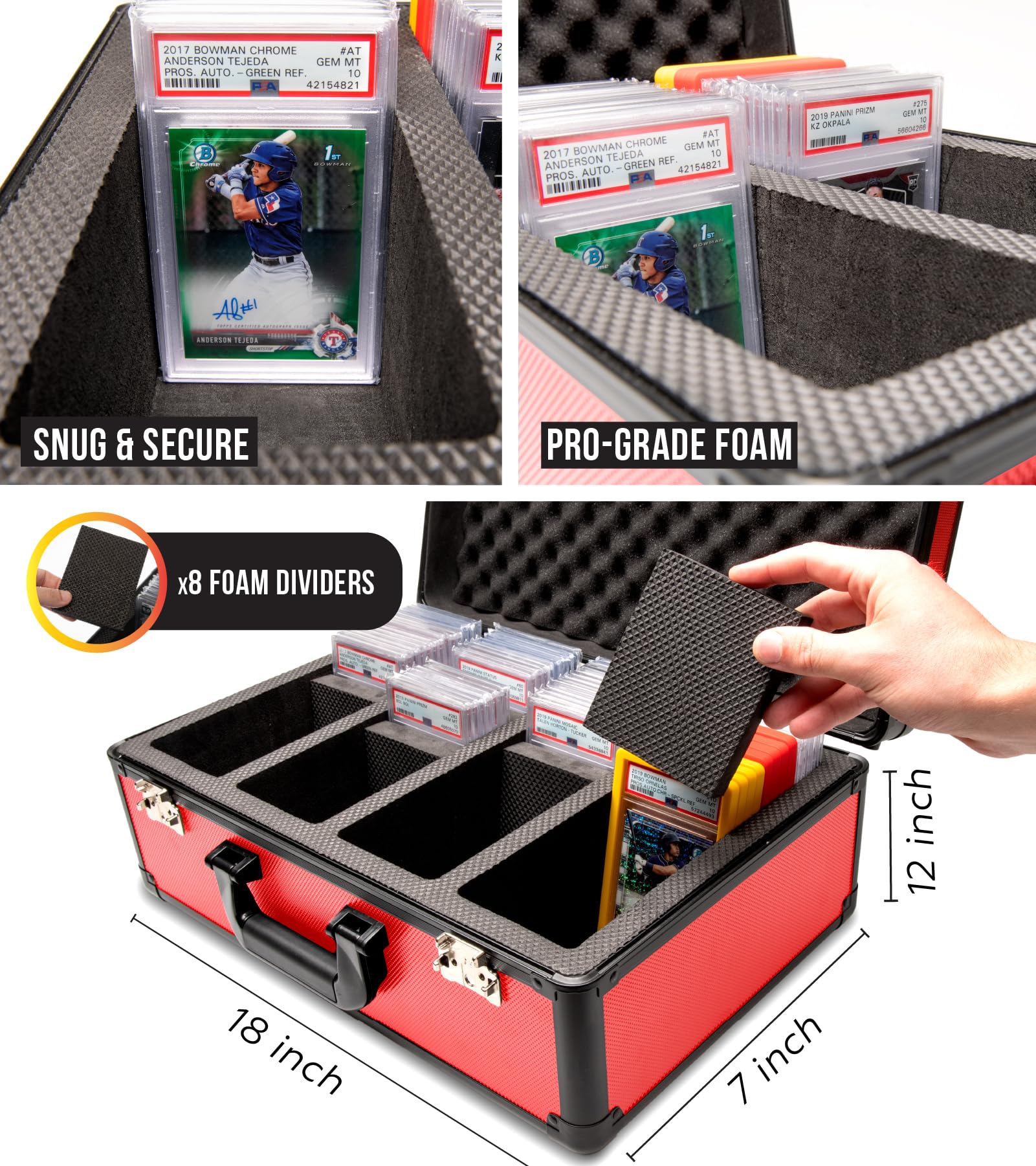 Panopply SLAB protective covering 4 Row Graded Card Storage Box PSA Card Slab Case For Graded cards Holds 160+ Slabs Graded Card Case for PSA Slab Box Graded Card Storage Sports Baseball Card Collector Gifts (RED)