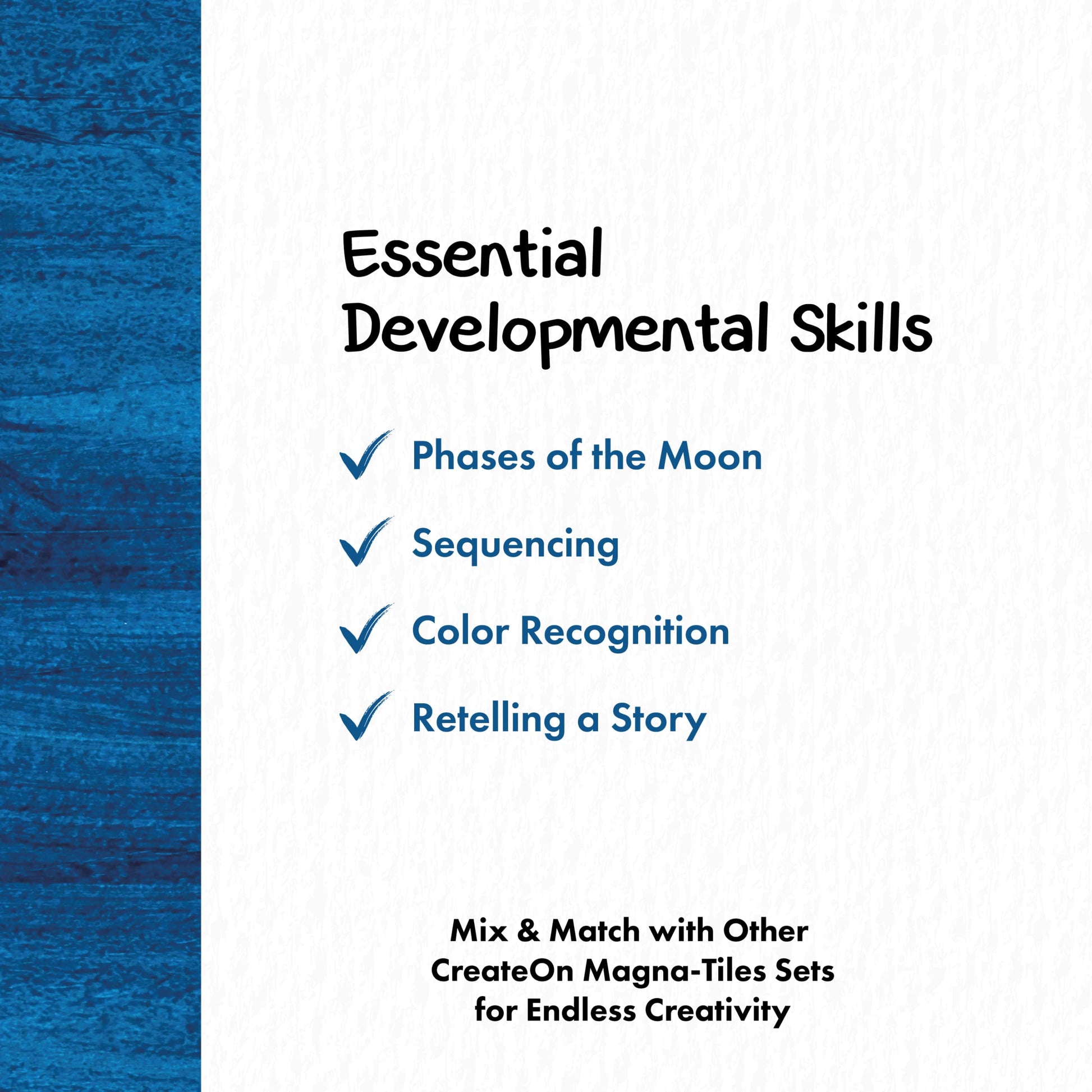Our Papa, Please Get the Moon for Me Magna-Tiles Structures set aids your child in learning about size comparison, lunar phases, STEAM skills, and more. Each piece boasts SuperColor Technology on both sides, with side one enabling your child to construct Papas ladder to the moon, and side two displaying storybook images.