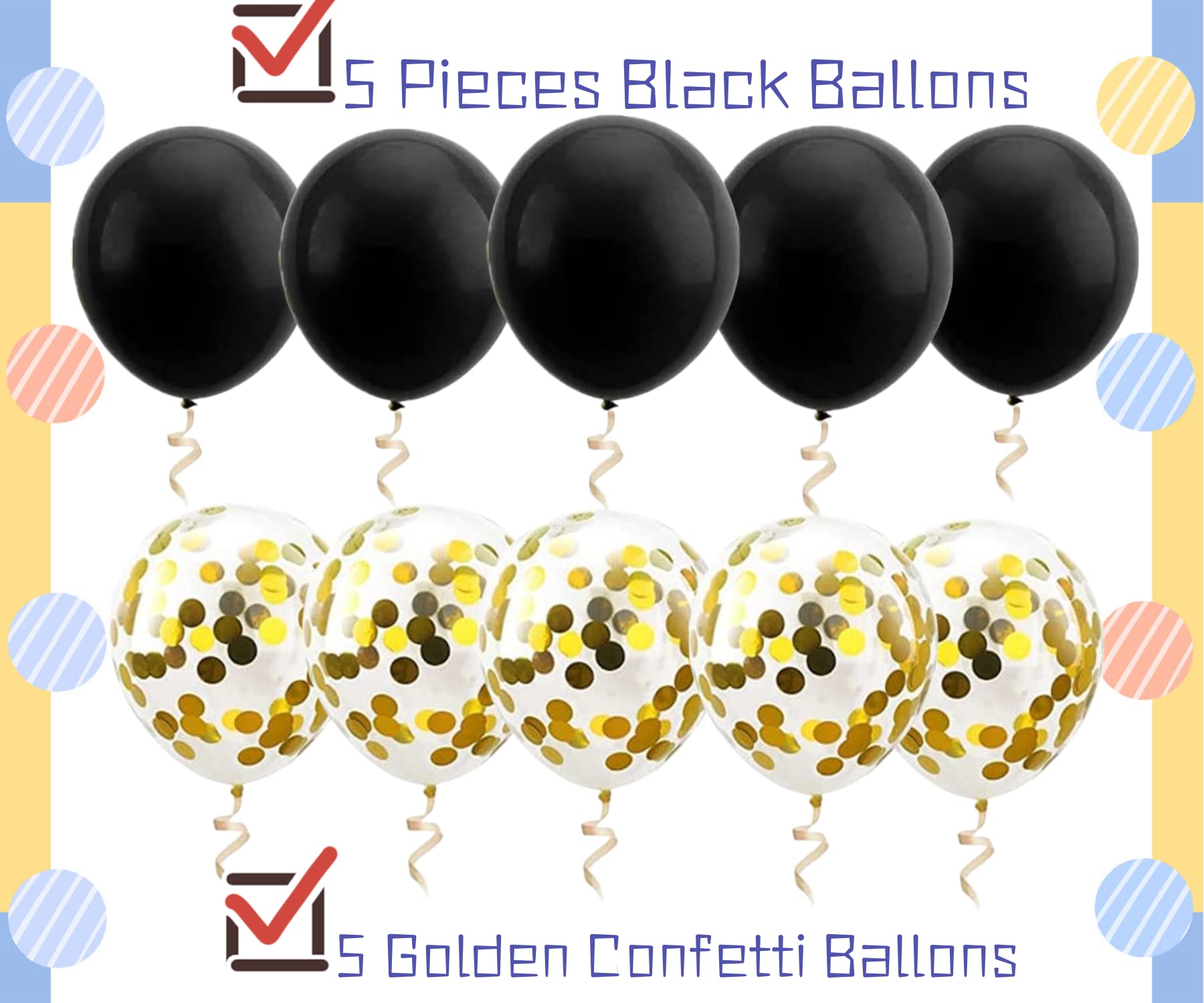 - Q: What is included in the Paper Banner Bunting set? A: The set includes 1 Black Gold 'Who Said You Could Leave' banner, 10 balloons (5 black and 5 golden confetti), and a 2m paper circle dots hanging garland.