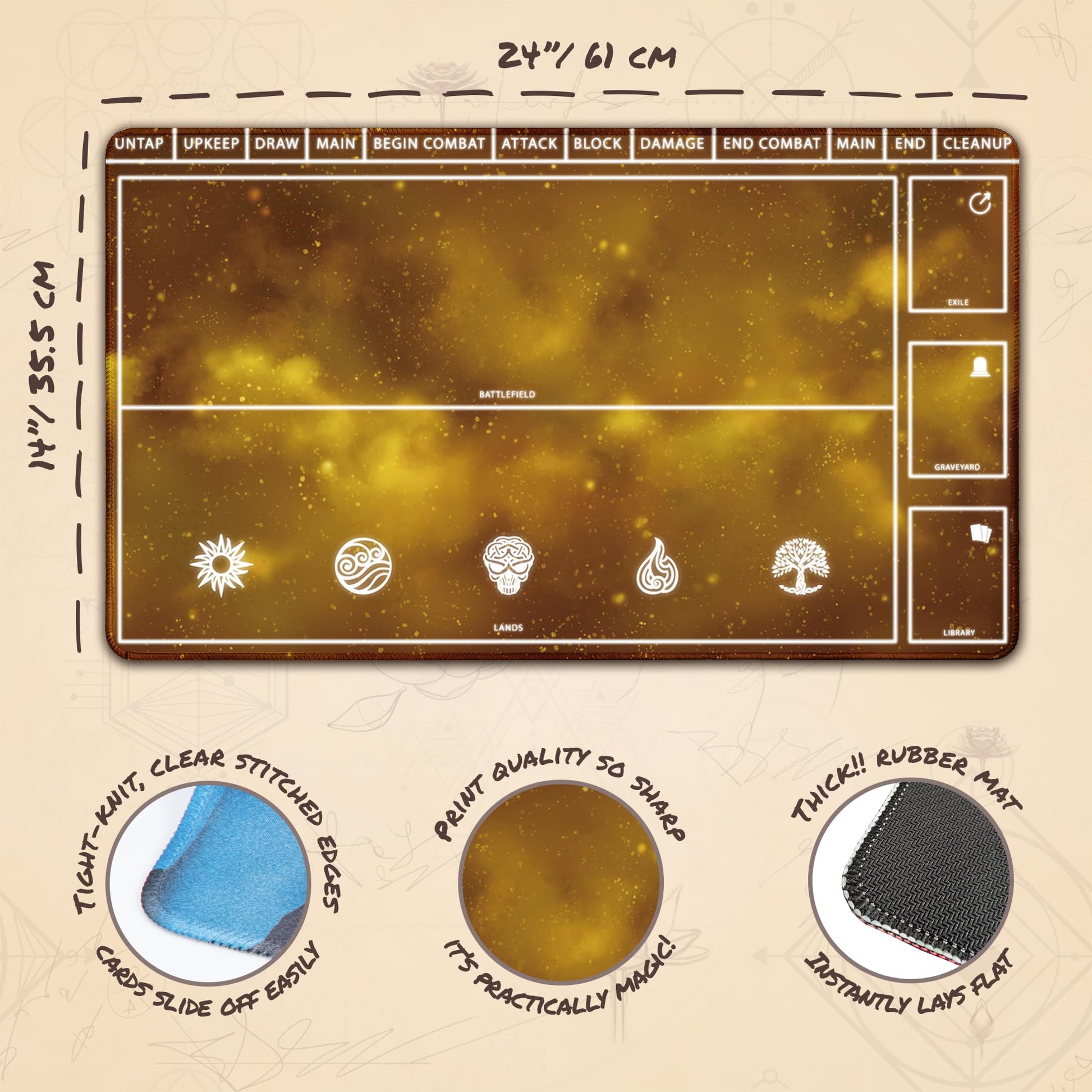 Paramint Cosmic Yellow Playmat With Zones (Stitched) - Mtg Playmat - Compatible With Magic The Gathering Playmat - Play Mtg, Yug