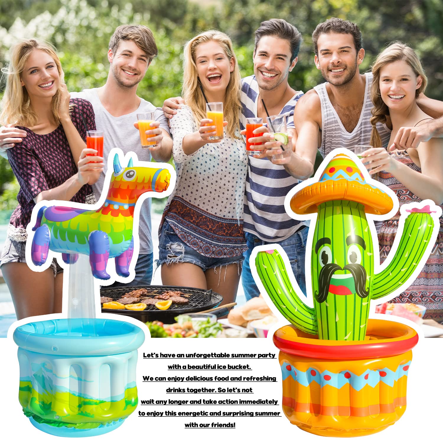 2 pack Inflatable Cooler, PARENTSWELL Cactus Cooler with Sombrero Hat and Alpaca Cooler, Tropically Themed Party and Hawaiian Party, Party Decorations, Party Supplies for Pool Party and Beach Party Unique & Attractive Design: Our cactus cooler features a cactus wearing a sombrero hat, We also have cute alpaca cooler. A fun way to keep drinks cool for an outdoor summer bash, it s definitely a huge hit for parties Large Capacity: The cactus cooler holding bucket inflatable demension is 26 in diameter and 16 in height, the alpaca cooler is 26 in diameter and 16 in height. They both inflated dimension are 47.5 in total height. The large capacity is great ideal for family gathering parties, swimming pool parties, cinco de mayo fiesta and neighborhood parties, providing you wonderful cool in hot summer Easy to Inflate/Deflate: Made of durable and sturdy PVC material, they re easy to inflate and deflate with pumps and the leak-proof valve effectively prevents unnecessary air leakage,help them well hold up air for long time. It can be folded to a small condition for carrying and storage, so it is great portable for vacation take Stylish Party Decoration: The Mexican style and the cute alpaca appearance make them great beautiful and eye-catching. There is no doubt that they would be a popular selfie props and a gorgeous addition to your party. Definitely impress and highlight your summer!