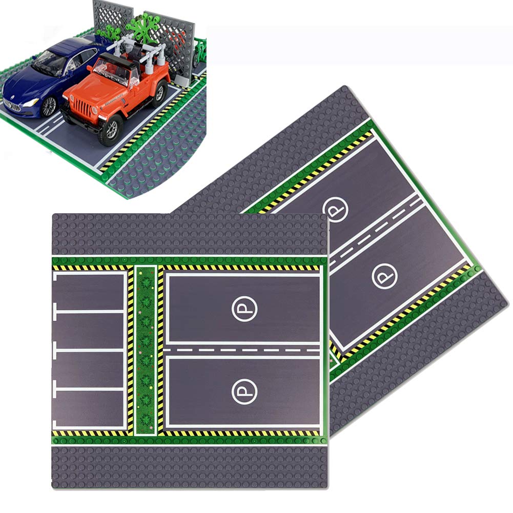 Parking Lot Baseplate 10' X 10' - Building Brick Base Plate Compatible For All Major Brands,For City Roads, Towns And Garages Kids Blocks Toy (2 Parking Lot Baseplate)