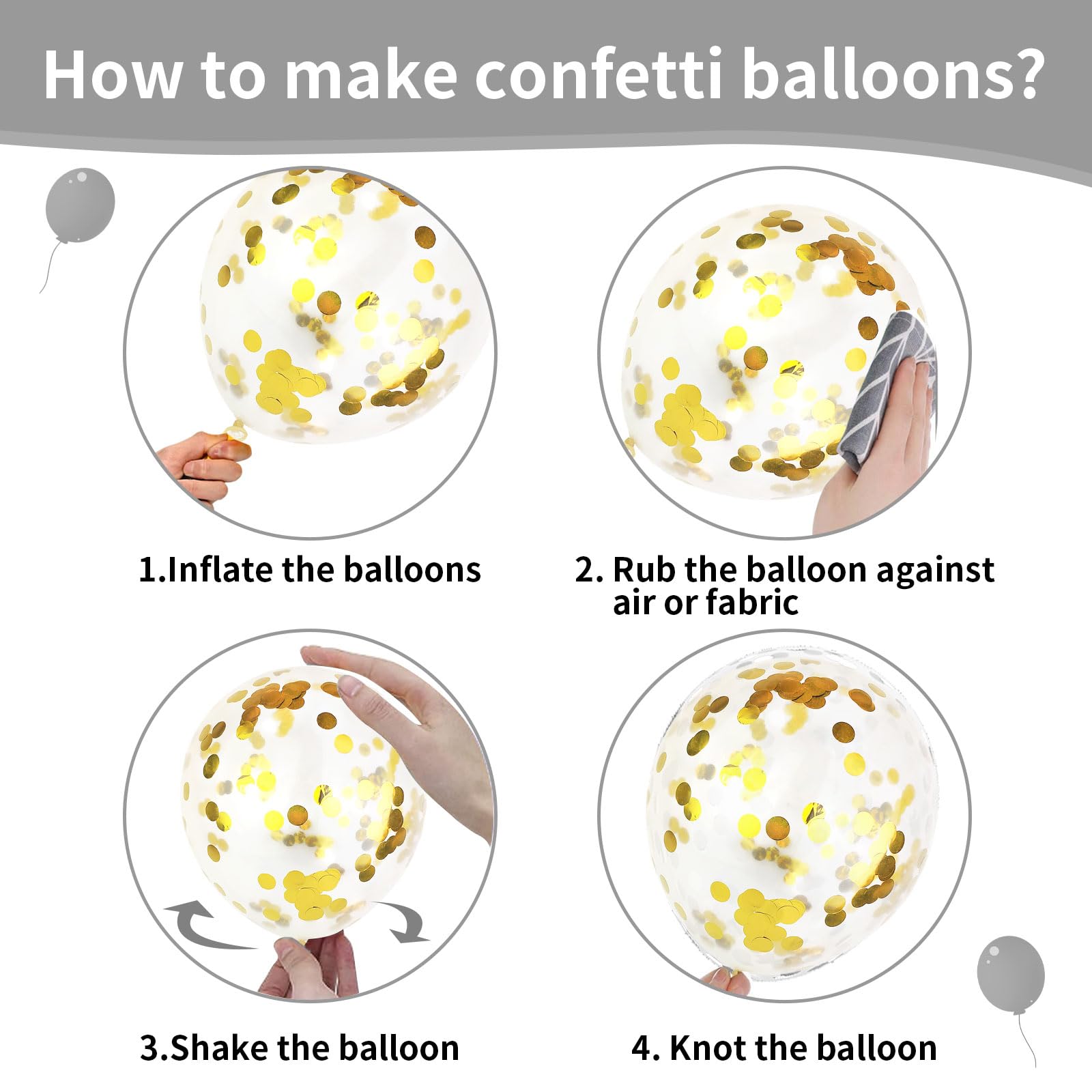 - Q: How can I inflate the confetti balloons effectively? A: To inflate confetti balloons, use either air or helium. After inflating, gently rub the balloon with a dry towel to help the confetti adhere to the inner surface. For helium-filled balloons, consider lightly spritzing some water inside before inflating to prevent the confetti from settling at the bottom.