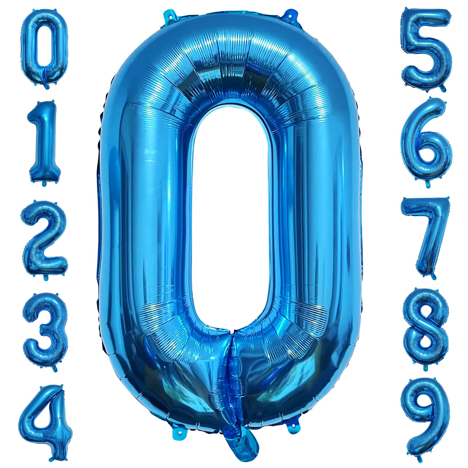Paticool 40 Inch Blue Number Balloon 0, Large Number Foil Mylar Balloons For Birthday Party Celebration Decorations Supplies, Di