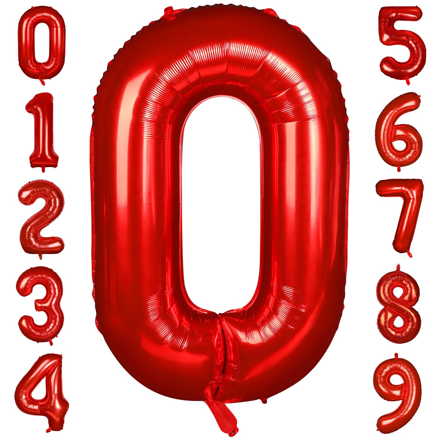 Paticool 40 Inch Red Number Balloon 0, Large Number Foil Mylar Balloons For Birthday Party Celebration Decorations Supplies, Dig