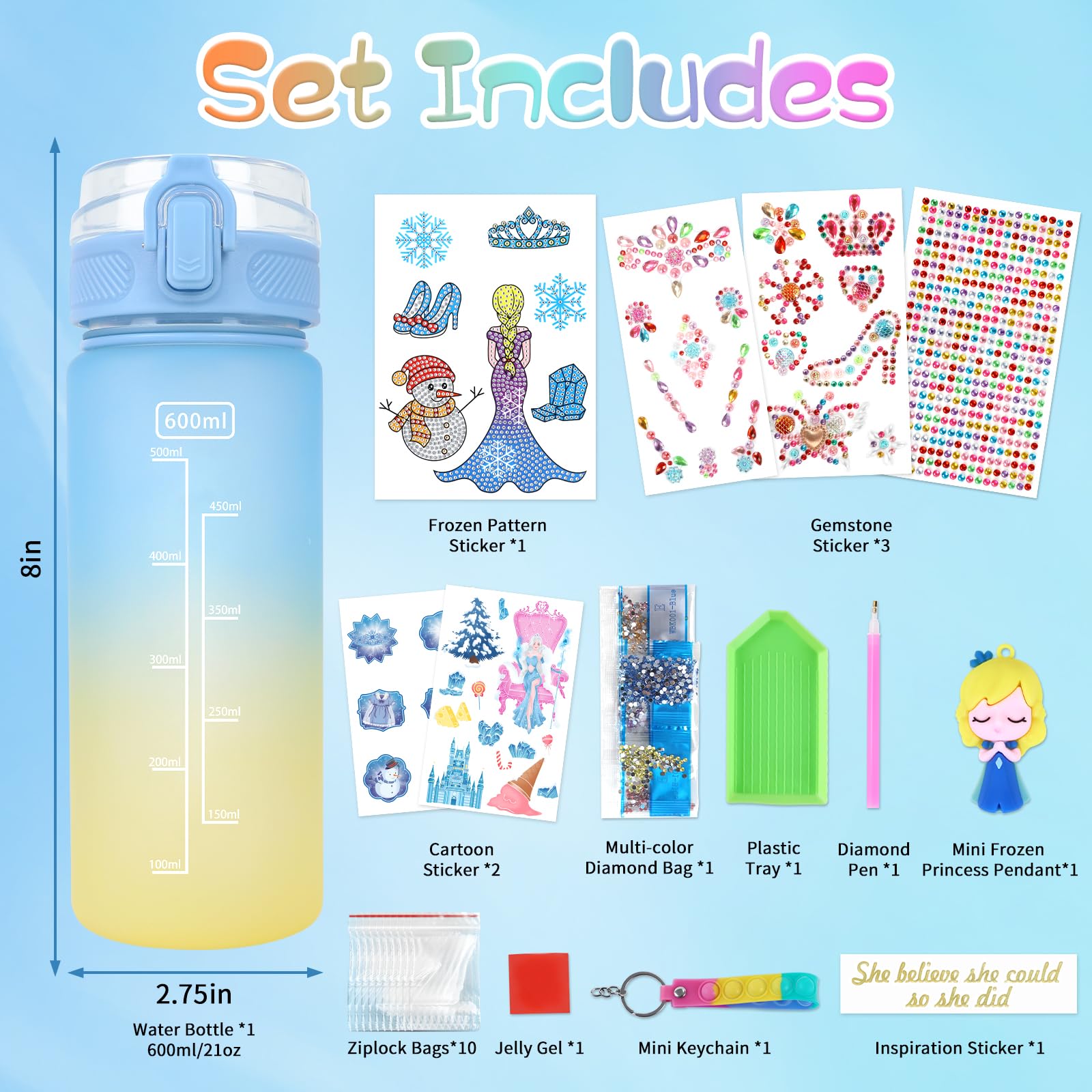 PERRYHOME Decorate Your Own Frozen Water Bottle Kits for Girls, Frozen Toys for Girls Age 4-10 Painting Crafts, Fun Arts and Cra