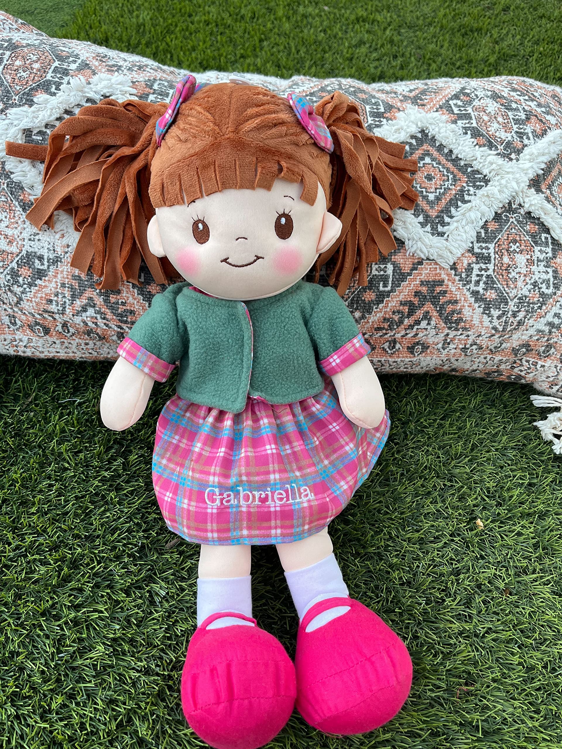 View comparePersonalized Snuggle Dolls, Custom Soft Baby Rag Doll, Pink Plaid Dress, 16 Inches, Muecas De Trapo Personalizadas Para Nias