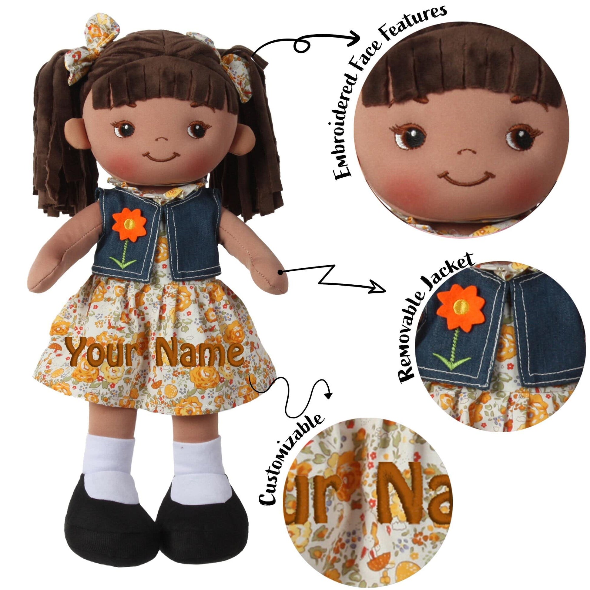 View comparePersonalized Snuggle Dolls, Custom Soft Brunette Baby Rag Doll, Blue Jacket Dress, 16 Inches, Muecas De Trapo Personalizadas Par