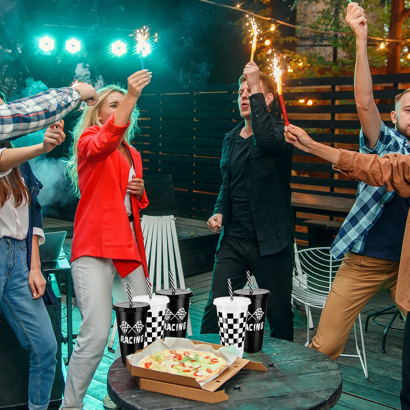 Features: Adorable design: These plastic race car cups would be thoughtful presents for race fans. Also because of the adorable design, this cup would make a fantastic party favor or addition at a themed birthday party. Attractive design: Not only is the checked flag race car cups bulk functional with its lids and straws, but it also raises the bar for aesthetic appeal. This practical and attractive design allows you to enjoy your favorite beverage in style whether youre watching your beloved racer in action or simply enjoying a backyard barbecue. Specifications: Material: plastic Color: black, white Size: Straw: 9.45 inches/ 24 cm Cup: 6.7 x 3.9 x 2.76 inches/ 17 x 9.9 x 7 cm Cup Capacity: about 24 oz Package includes: 24 x Race plastic cups with lid and straw Notes: Manual measurement, please allow slight errors on size. The color may exist a slight difference due to different screen displays.
