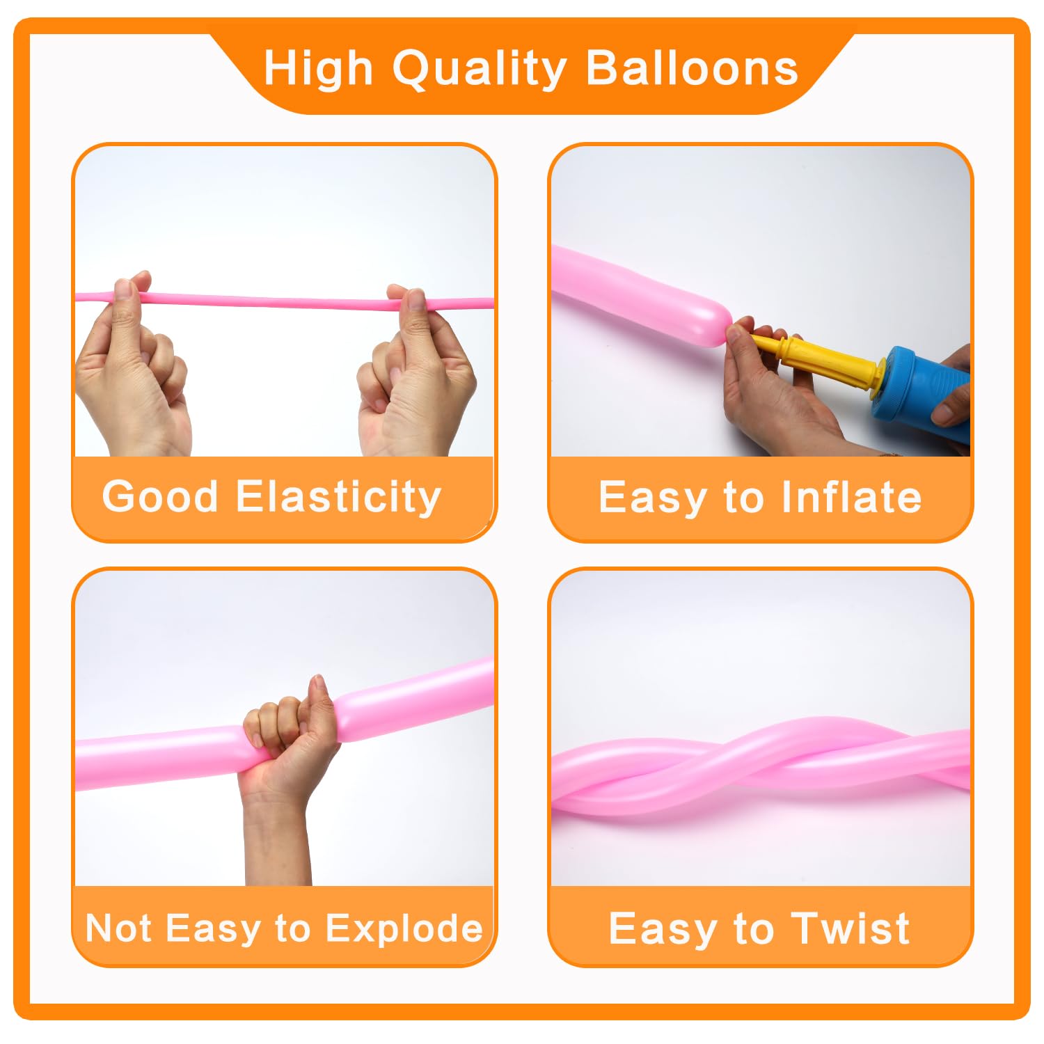 - Q: How do I properly inflate and use the modeling balloons? A: To inflate the modeling balloons, first stretch them by pulling back and forth 4-7 times. It is recommended to use an air pump for inflation and to avoid overfilling to prevent breakage.