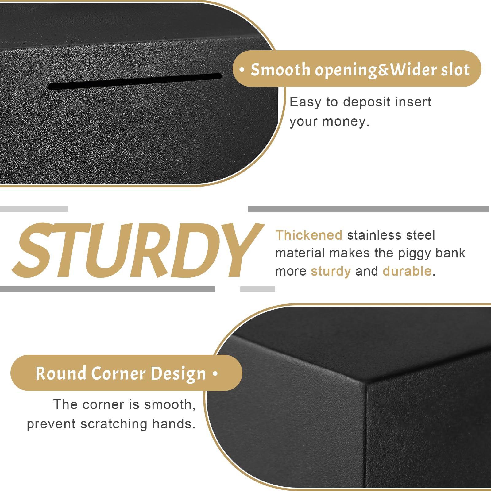 View comparePiggy Bank For Adults Must Break To Open, Unbreakable Adults Piggy Bank Made Of Stainless Steel, Metal Saving Bank (Black, 7.9-I