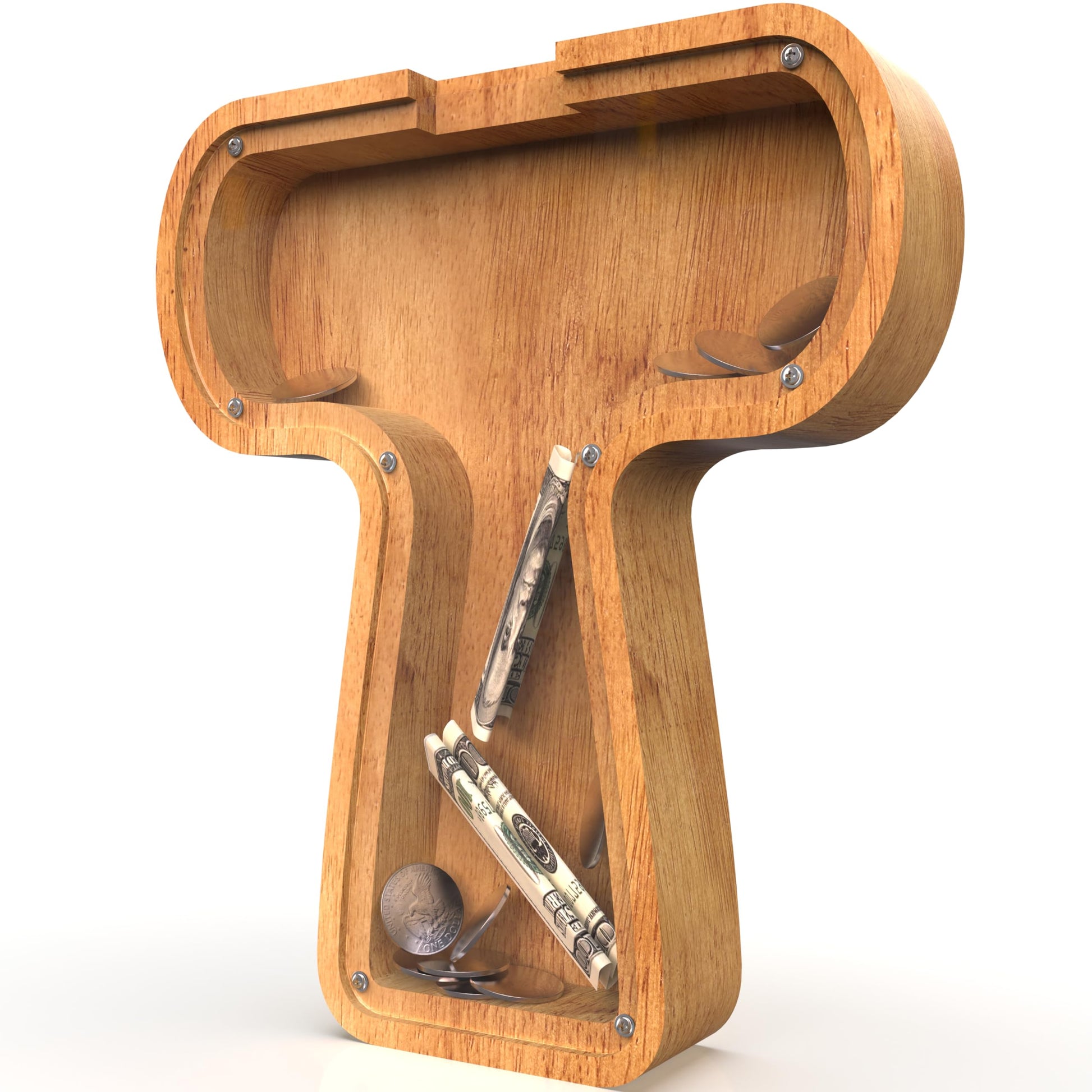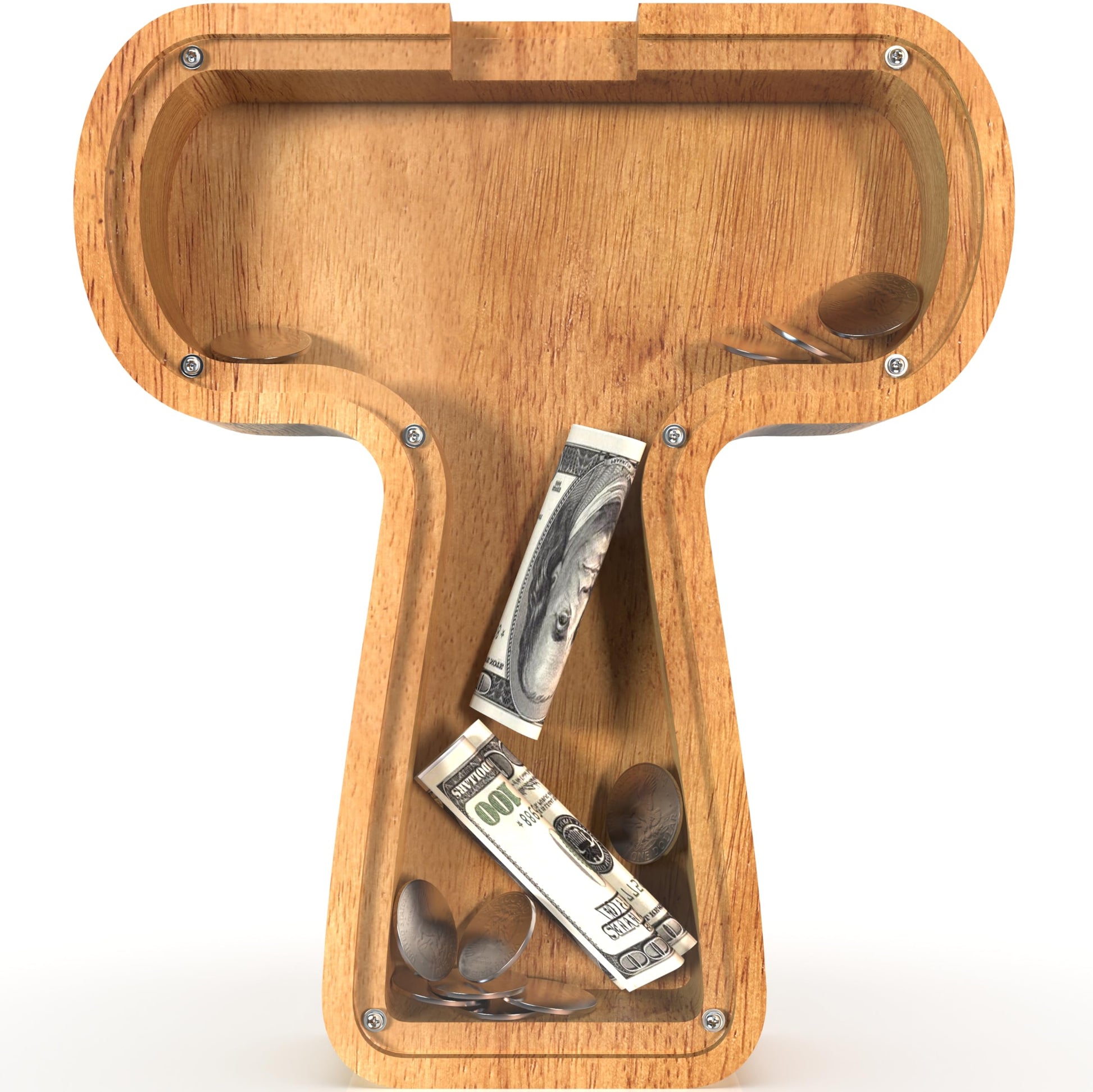 View comparePiggy Bank For Kids Boys Girls, Large Personalized Wooden Letter Piggy Bank With Cut-Out Design, Alphabet Letter Coin Banks, Money Savings Box, Wooden Bank For Kids Creative Gift For Real-Money(T)