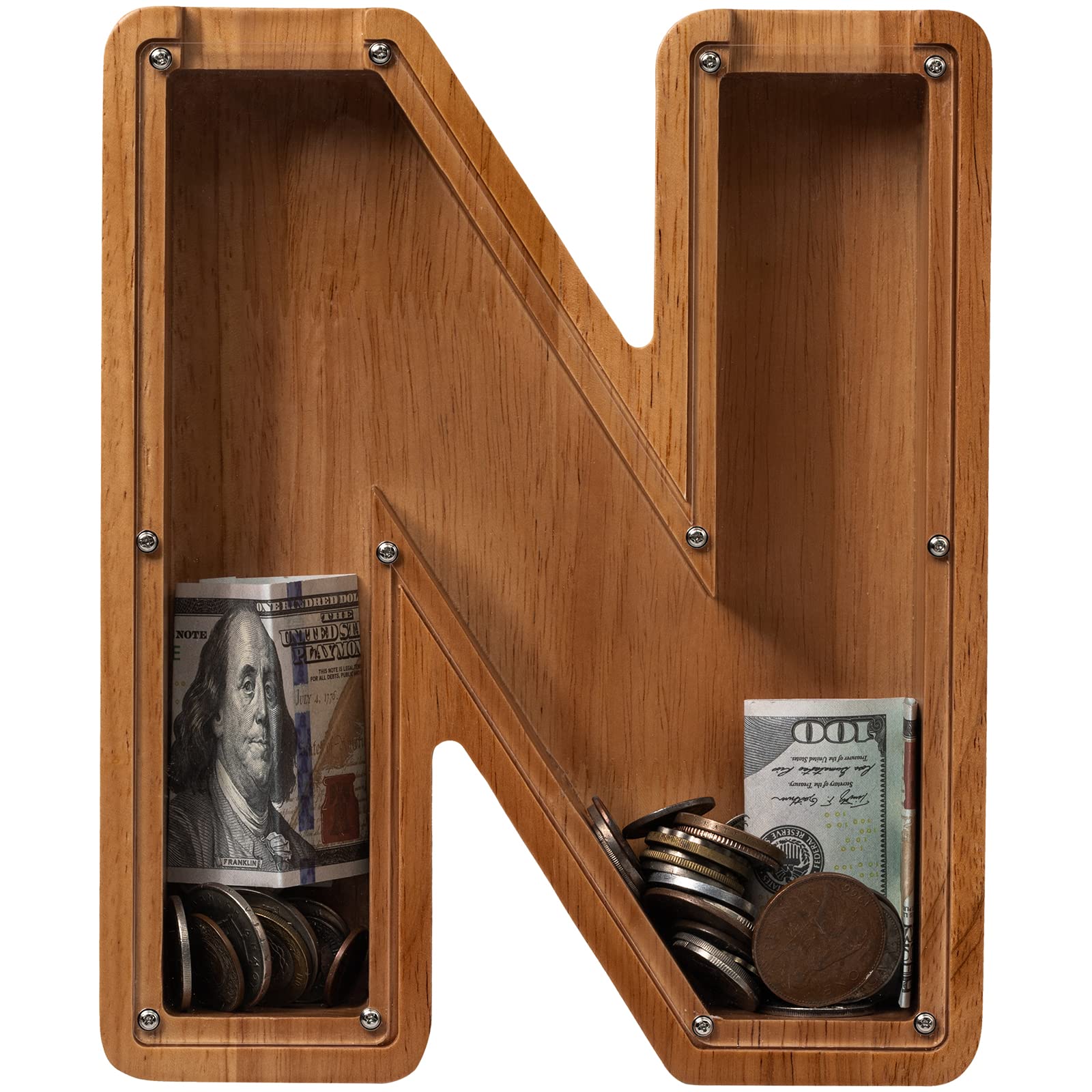 Piggy Bank For Kids Boys Girls, Wooden Large Letter Piggy Bank Alphabet Money Bank With Initial N, Coin Bank Fun Gifts For Birthday, Christmas, Festival, Baby Shower