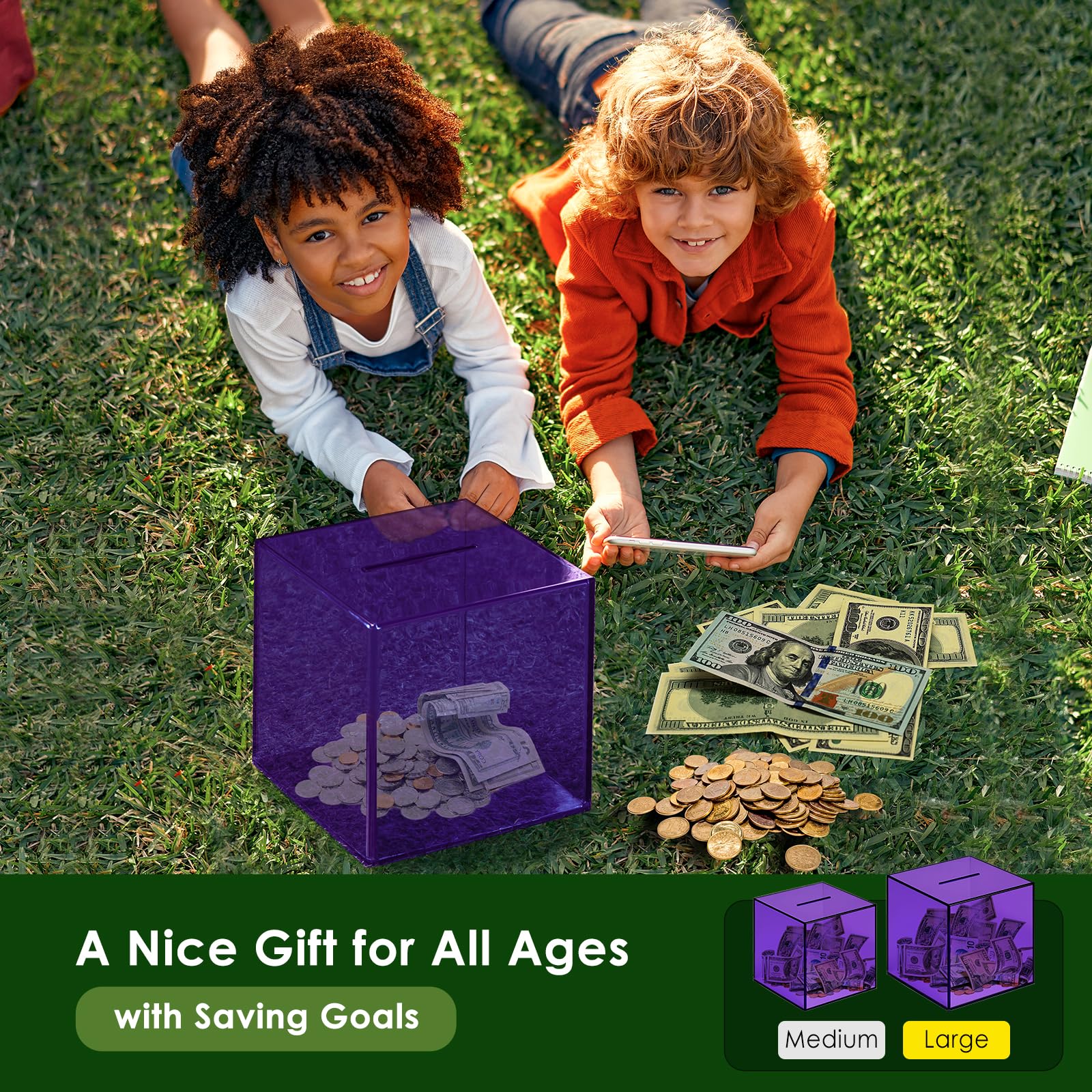 Piggy Bank for mature-themeds Must Break to Open Vcertcpl Acrylic Clear Piggy Bank Money Saving Box for Cash Saving Unopenable mature-themeds Bank for Real Money Bank Coin Bank Change Jar (Purple 12x12CM)