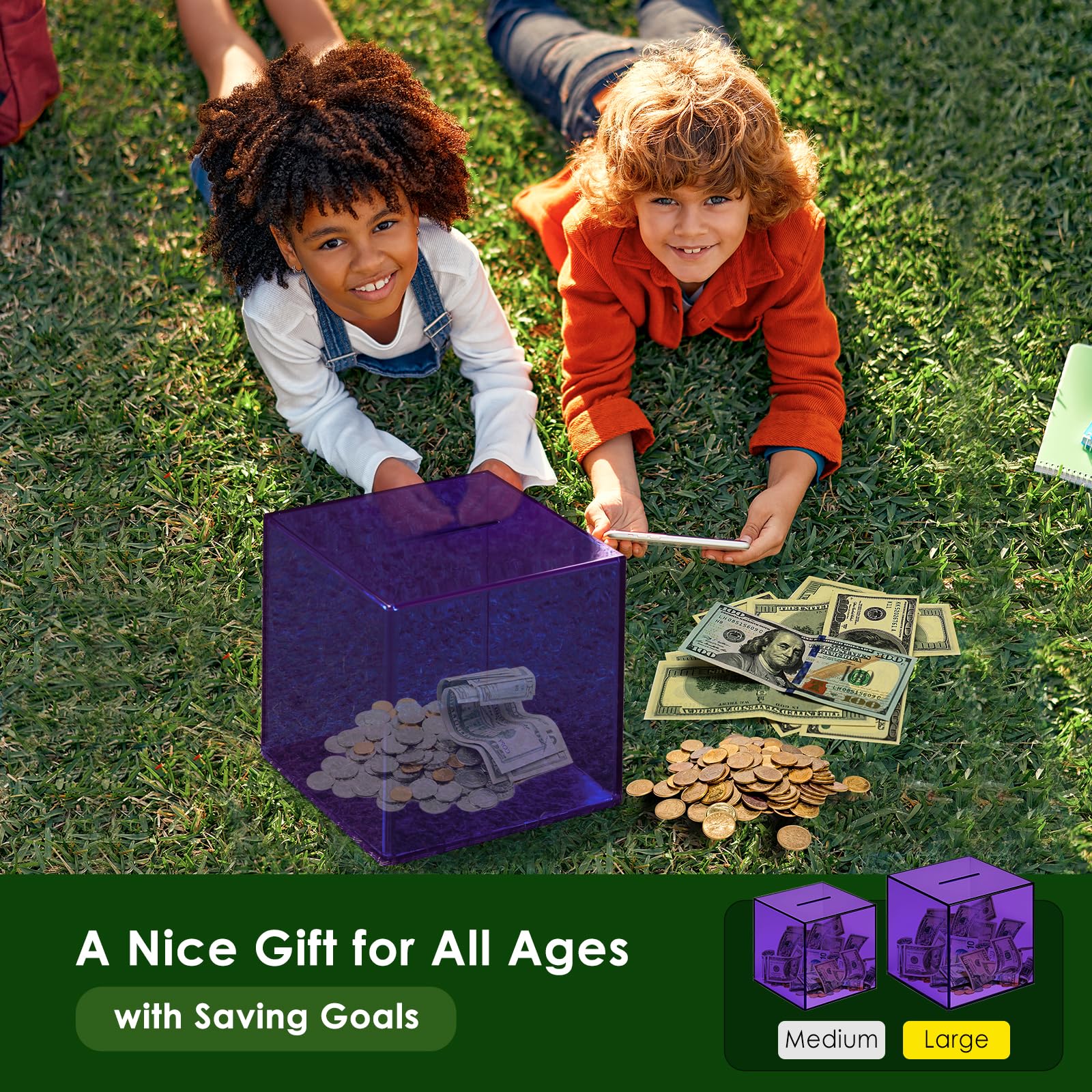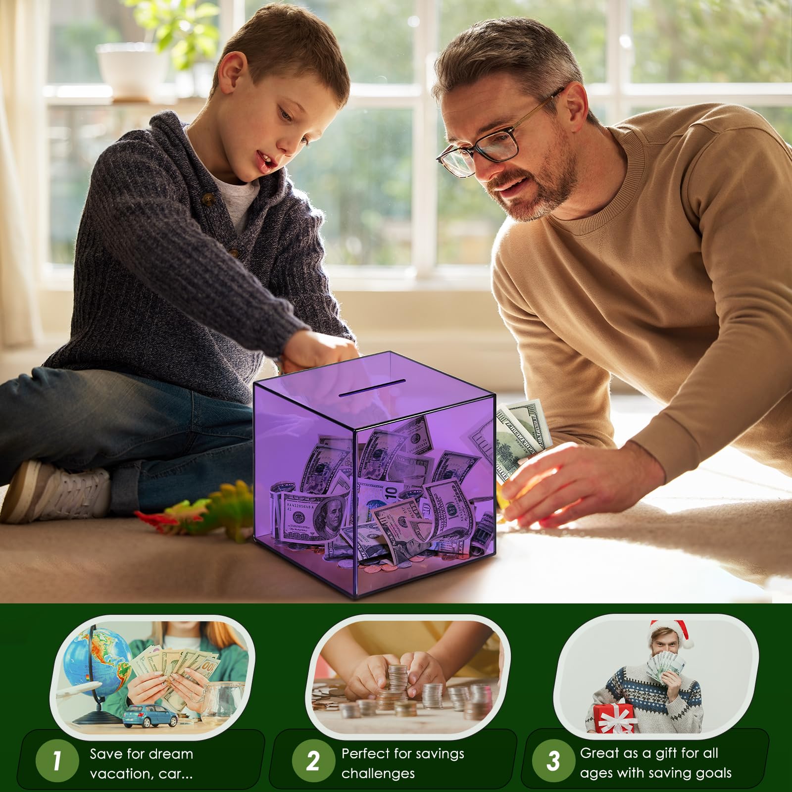 Piggy Bank for mature-themeds Must Break to Open Vcertcpl Acrylic Clear Piggy Bank Money Saving Box for Cash Saving Unopenable mature-themeds Bank for Real Money Bank Coin Bank Change Jar (Purple 15x15CM)