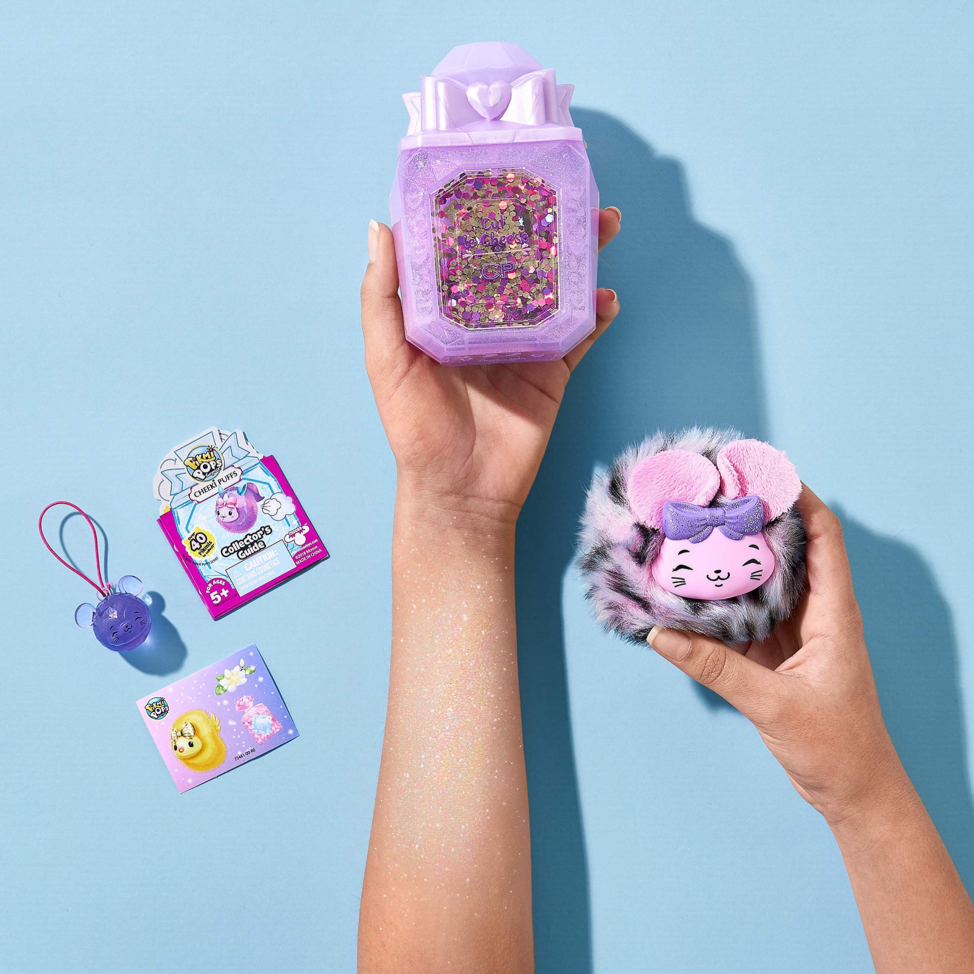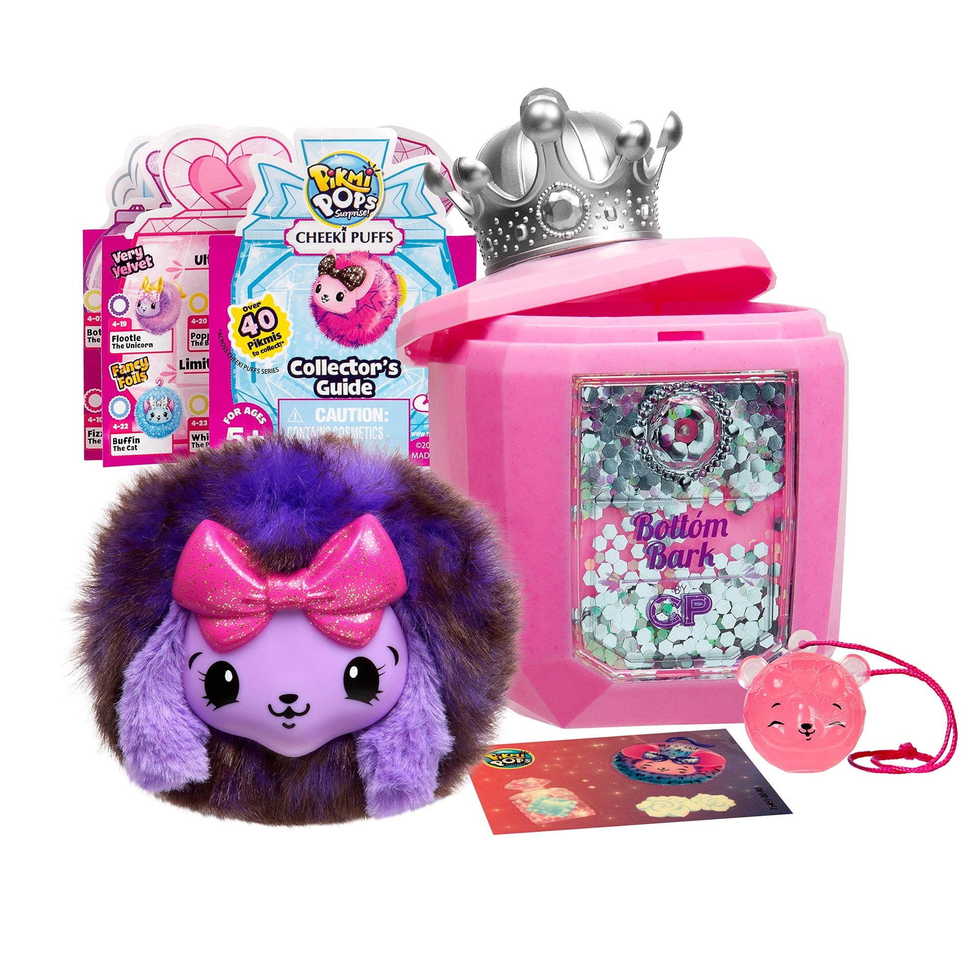 Shimmerize yourself from head to toe with all new Cheeki Puffs! New from the sweet world of Pikmi Pops, Cheeki Puffs are an irresistibly cute range of plush characters packed with scented shimmer. There are 4 shimmer shades to sparkle up your day: rainbow, pink, purple and teal. Each Cheeki Puffs Surprise Pack comes with 1 medium-sized scented shimmer plush displayed inside a collectible perfume bottle, 2 surprises* and 1 collector's guide. There are over 40 characters to collect across the range, including an assortment of beautiful perfume bottles and new glam surprise items! Check back for more! There's always a cute new surprise in store from the sweet world of Pikmi Pops! *Surprise items may include: nail stickers, charms, hair-ties, sticker sheets, metallic rub-on tattoos.